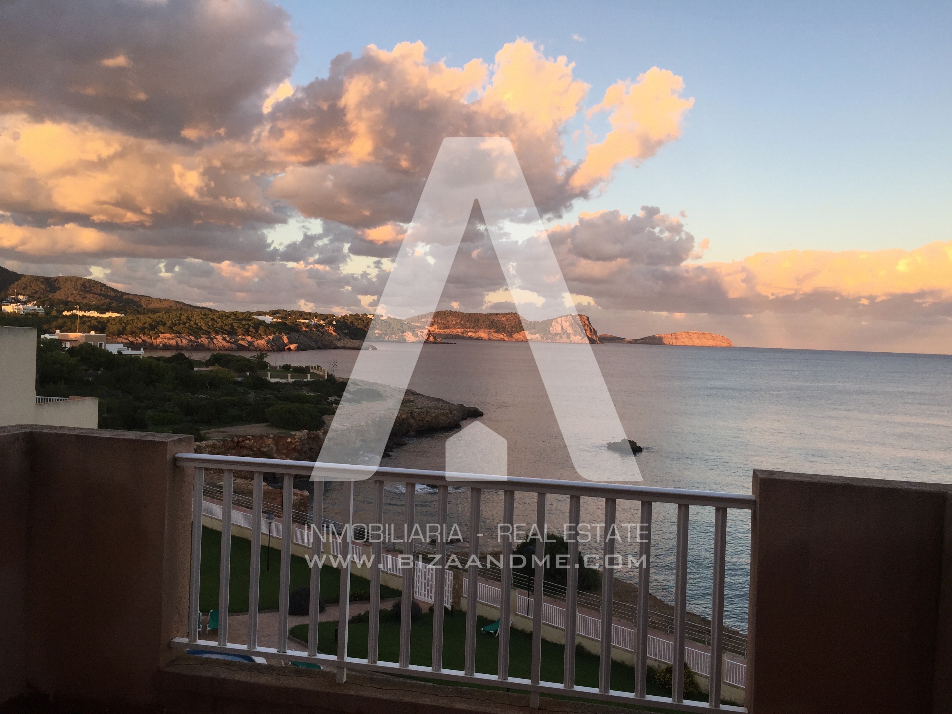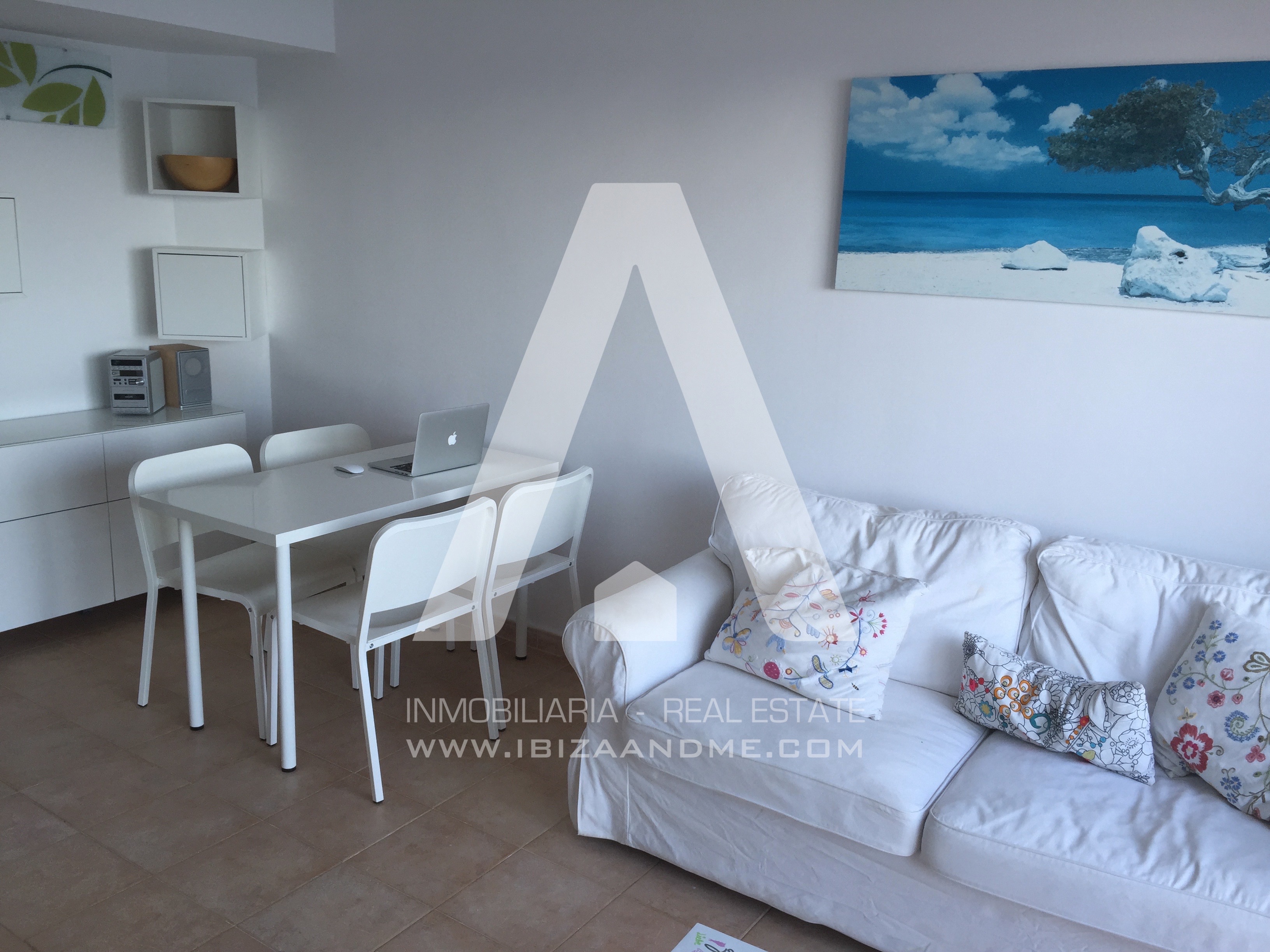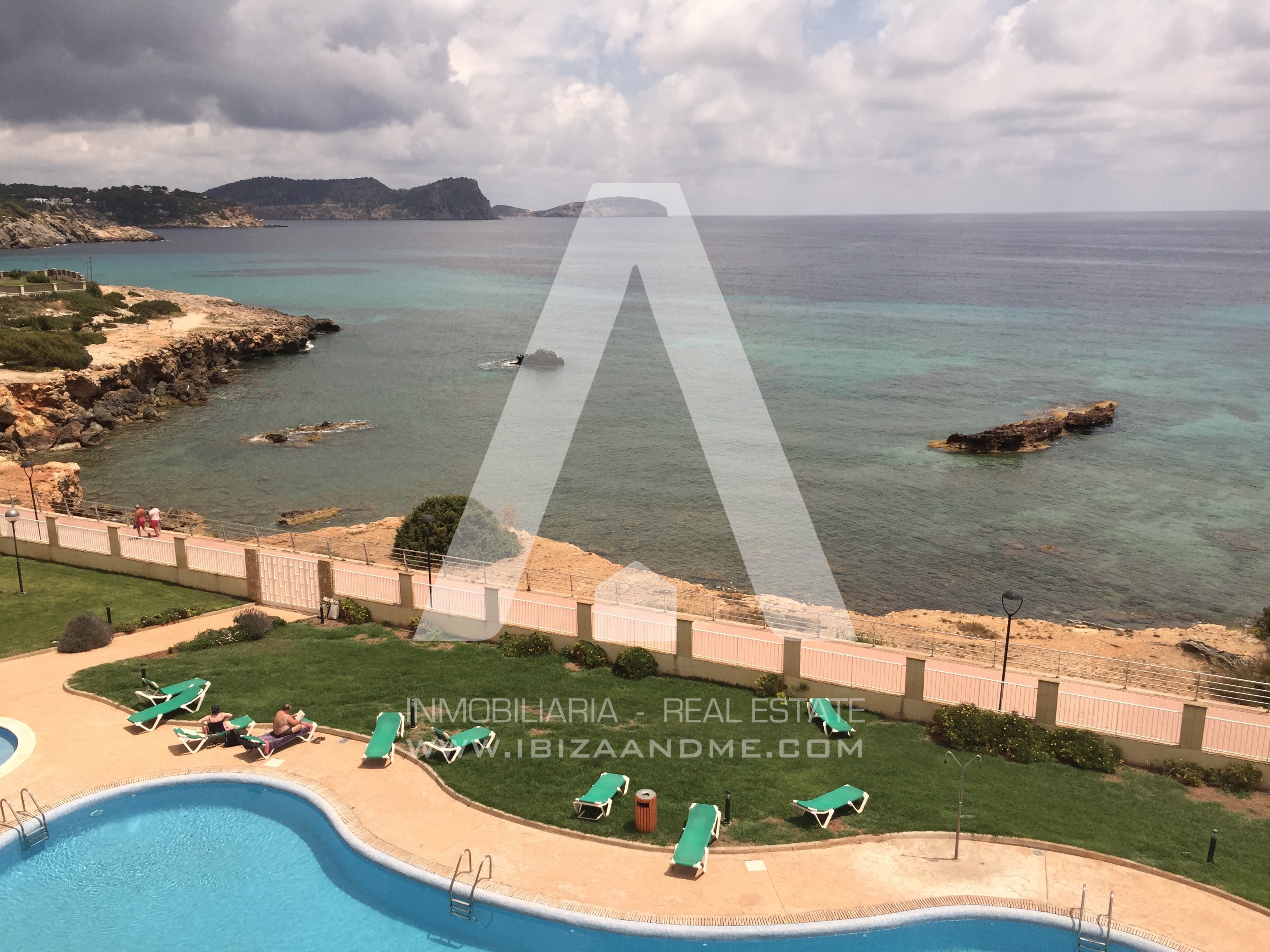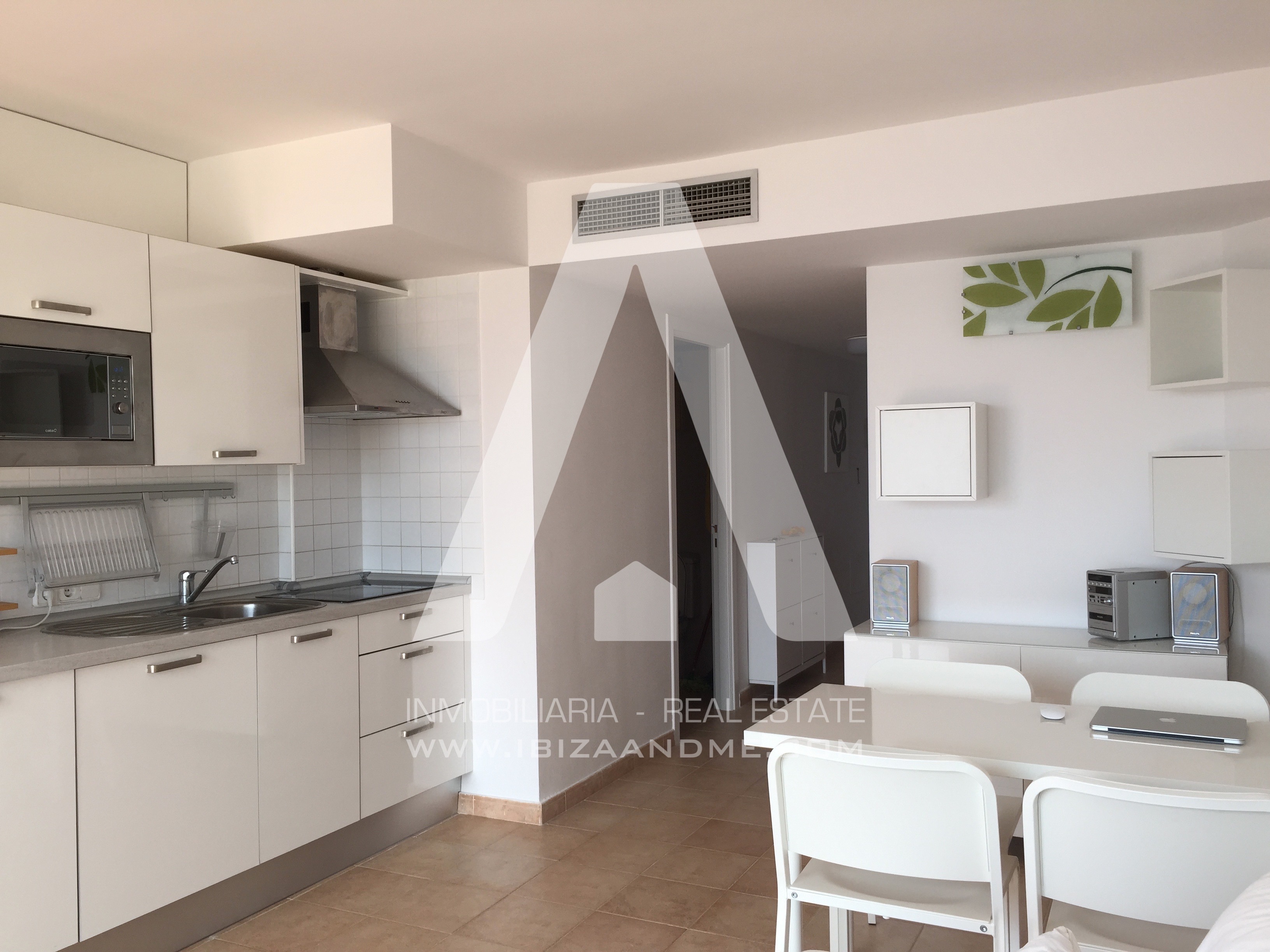 Bonita cuarta y última planta de una habitación con vistas a Tagomago. Con 55 m2, encontramos también una terraza de 10m2. Piscina comunitaria