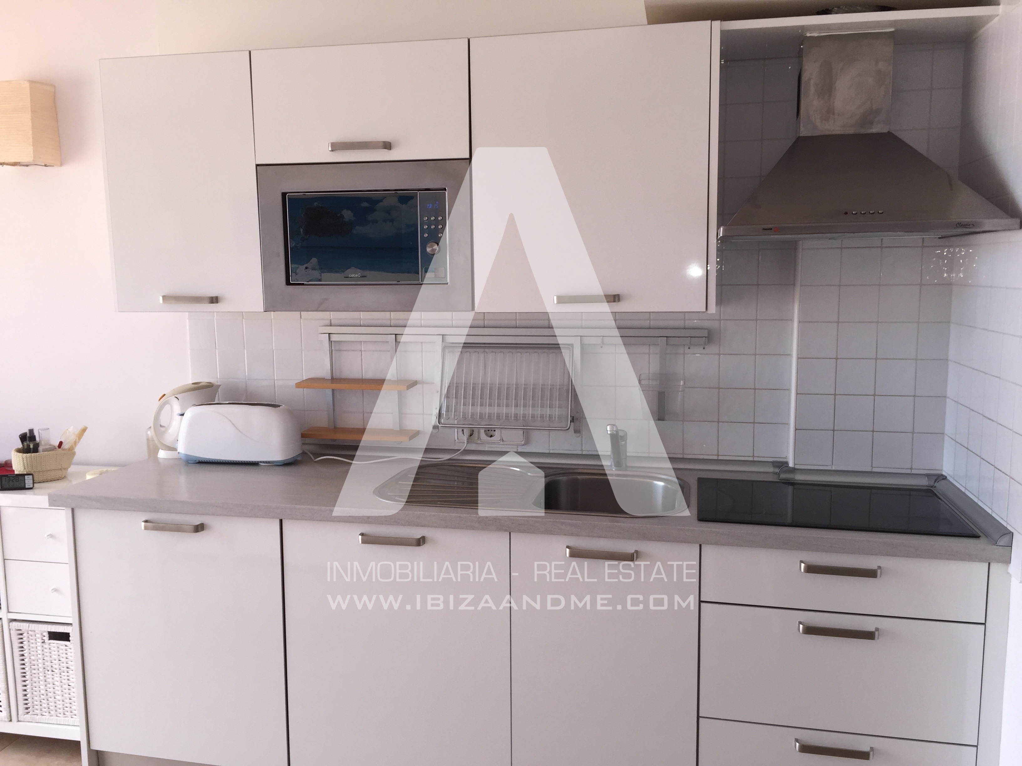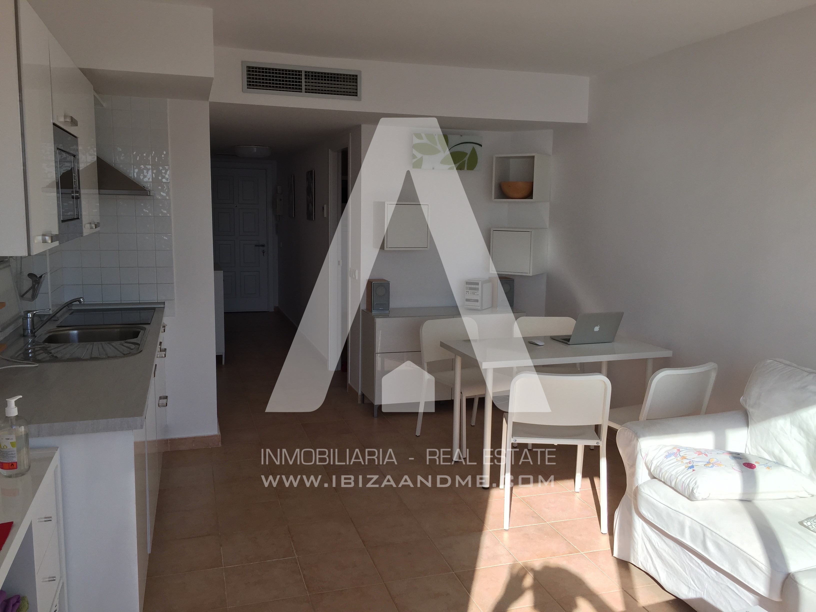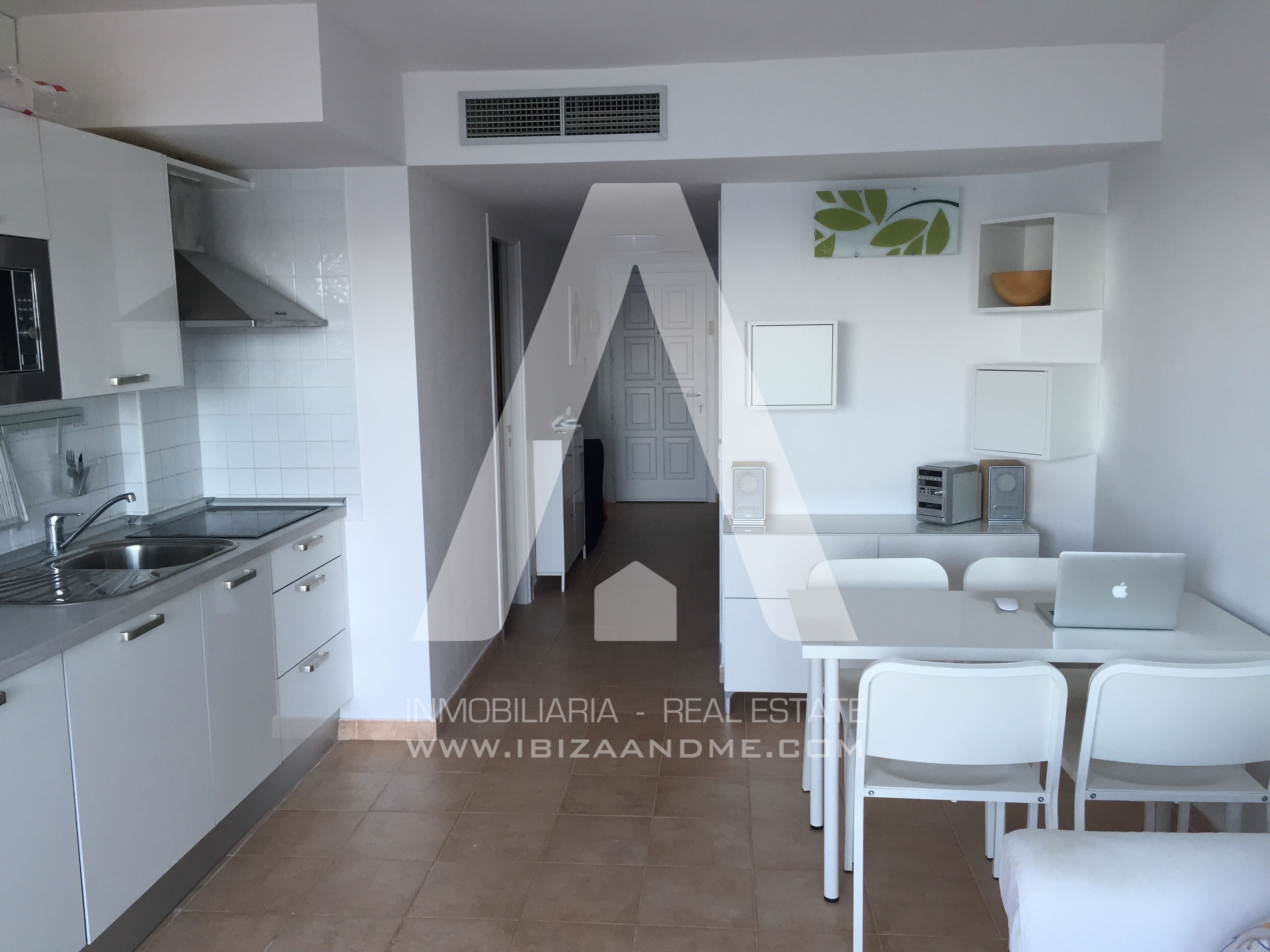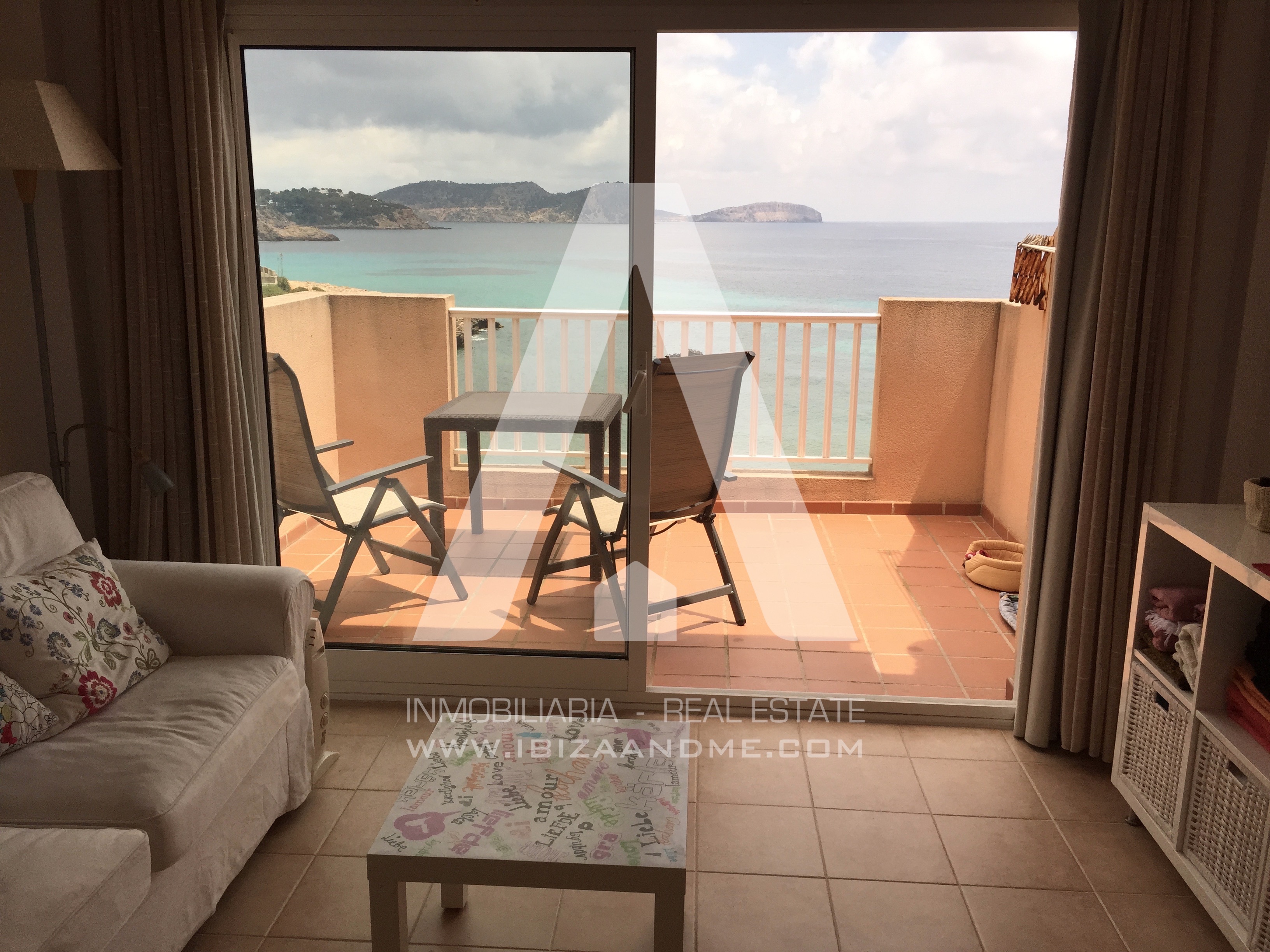 Bonita cuarta y última planta de una habitación con vistas a Tagomago. Con 55 m2, encontramos también una terraza de 10m2. Piscina comunitaria