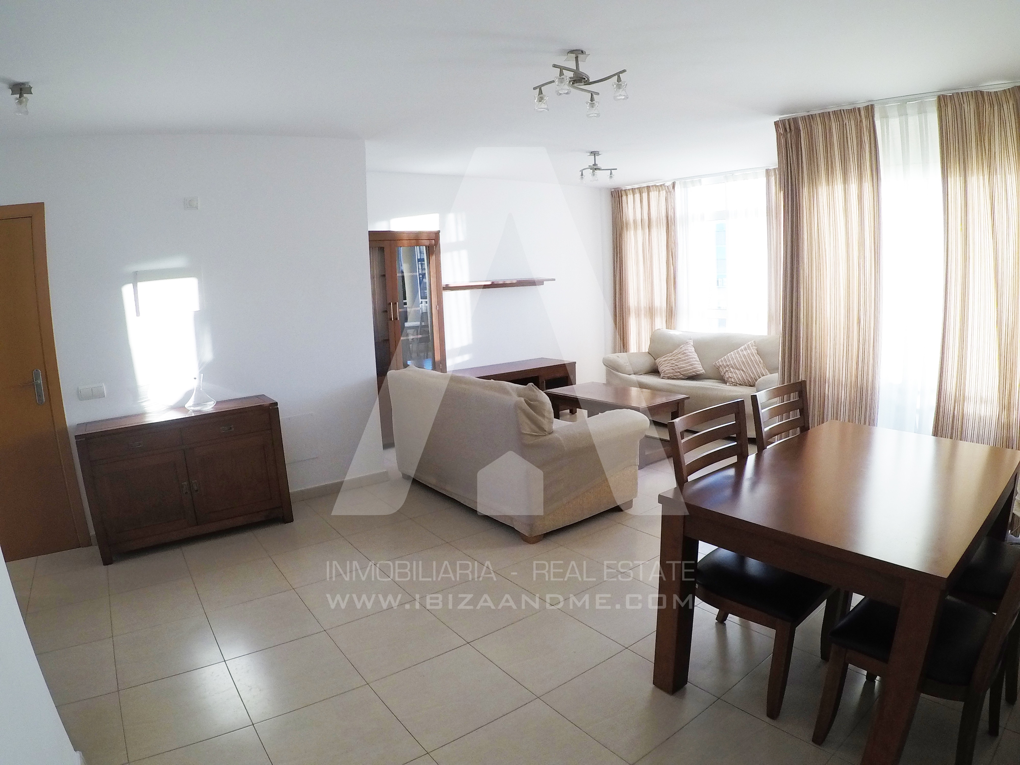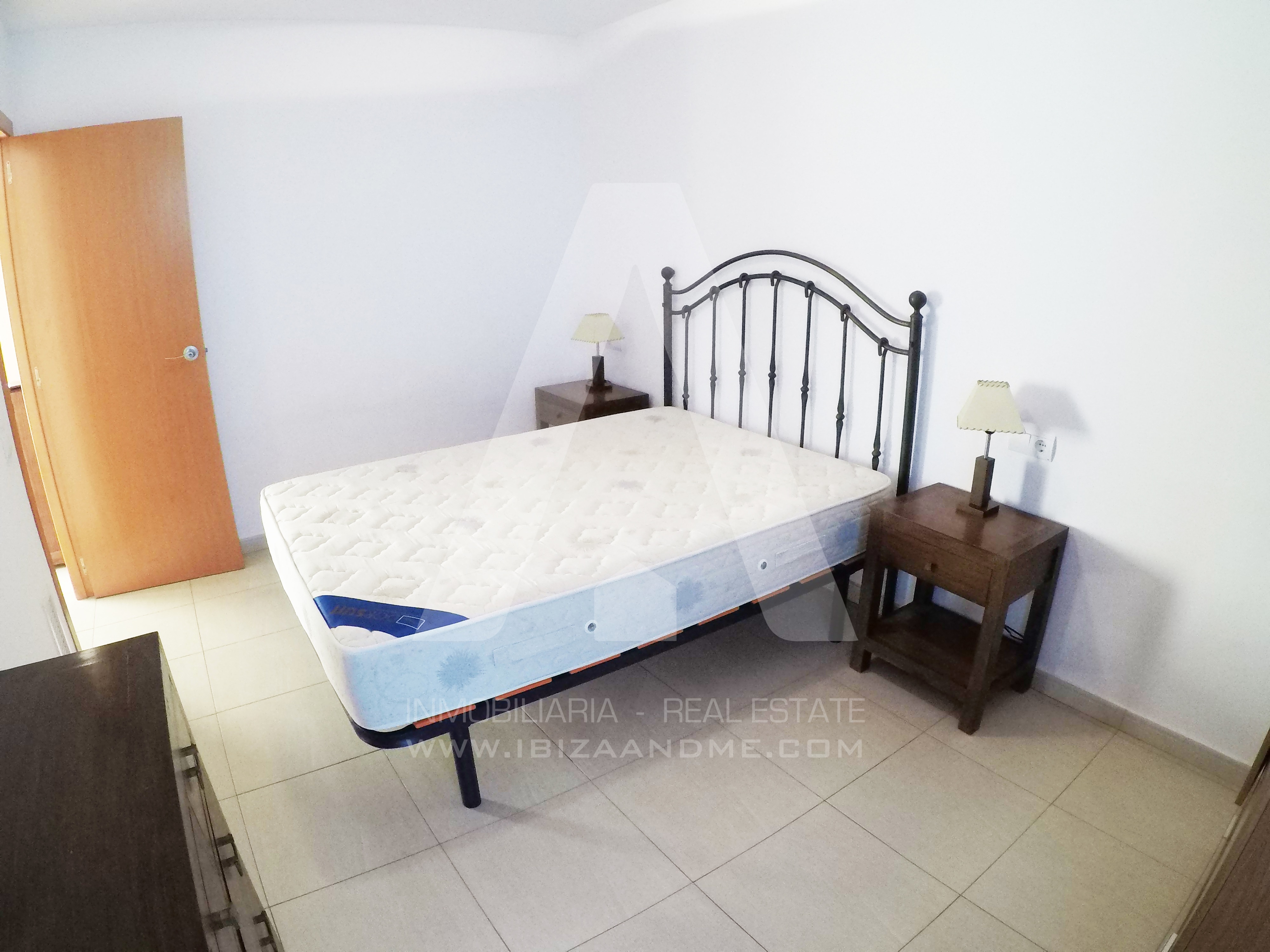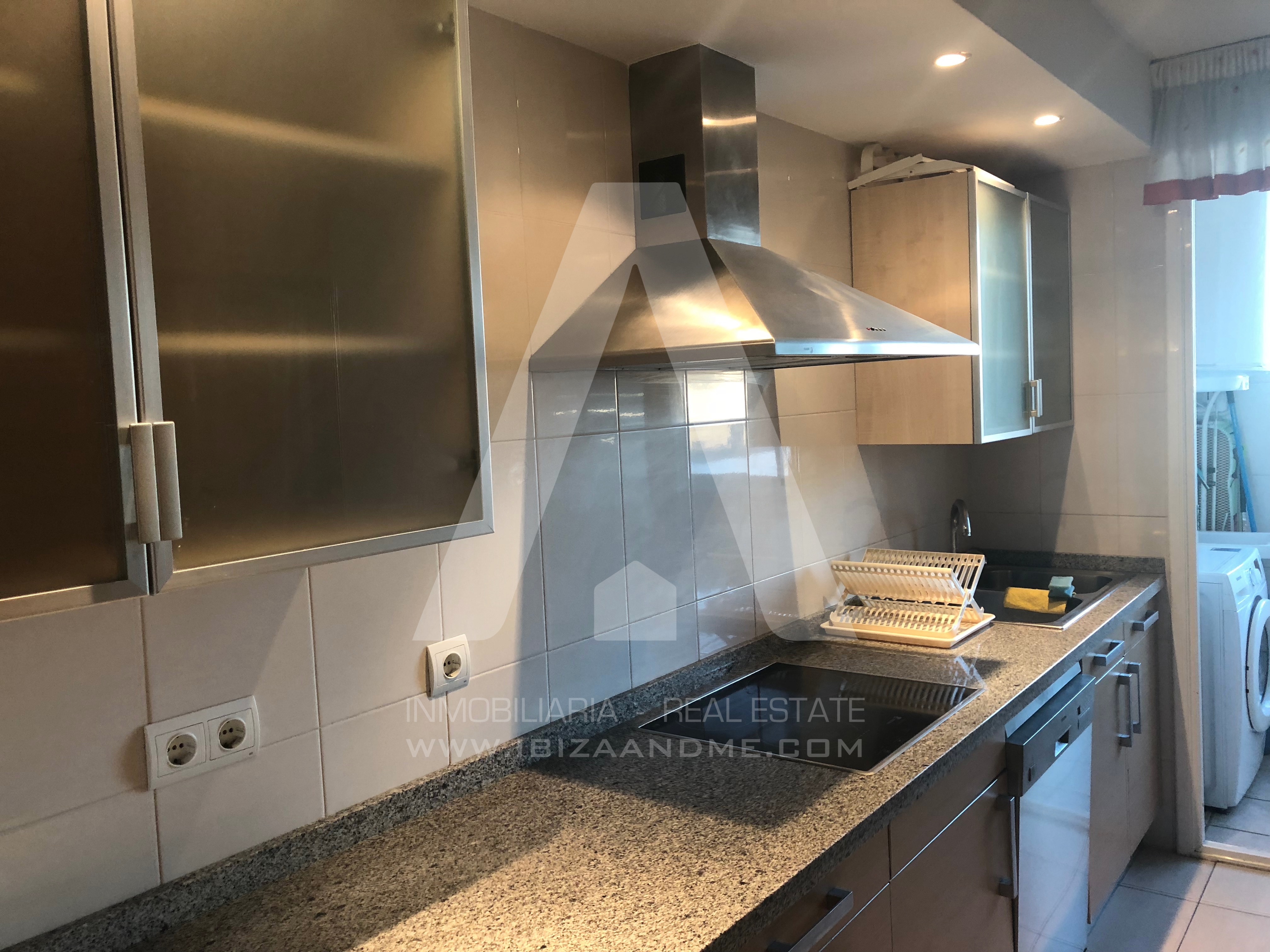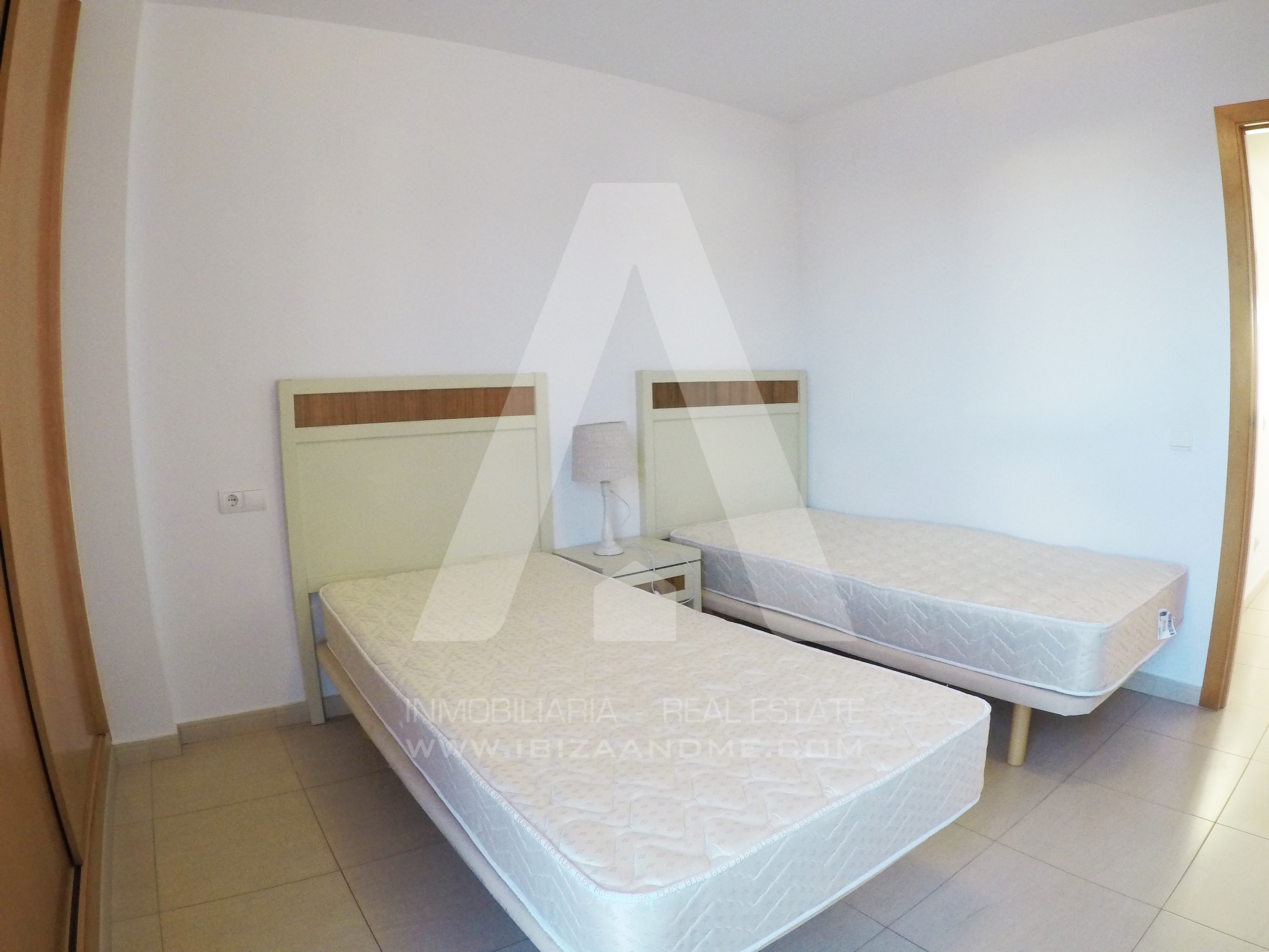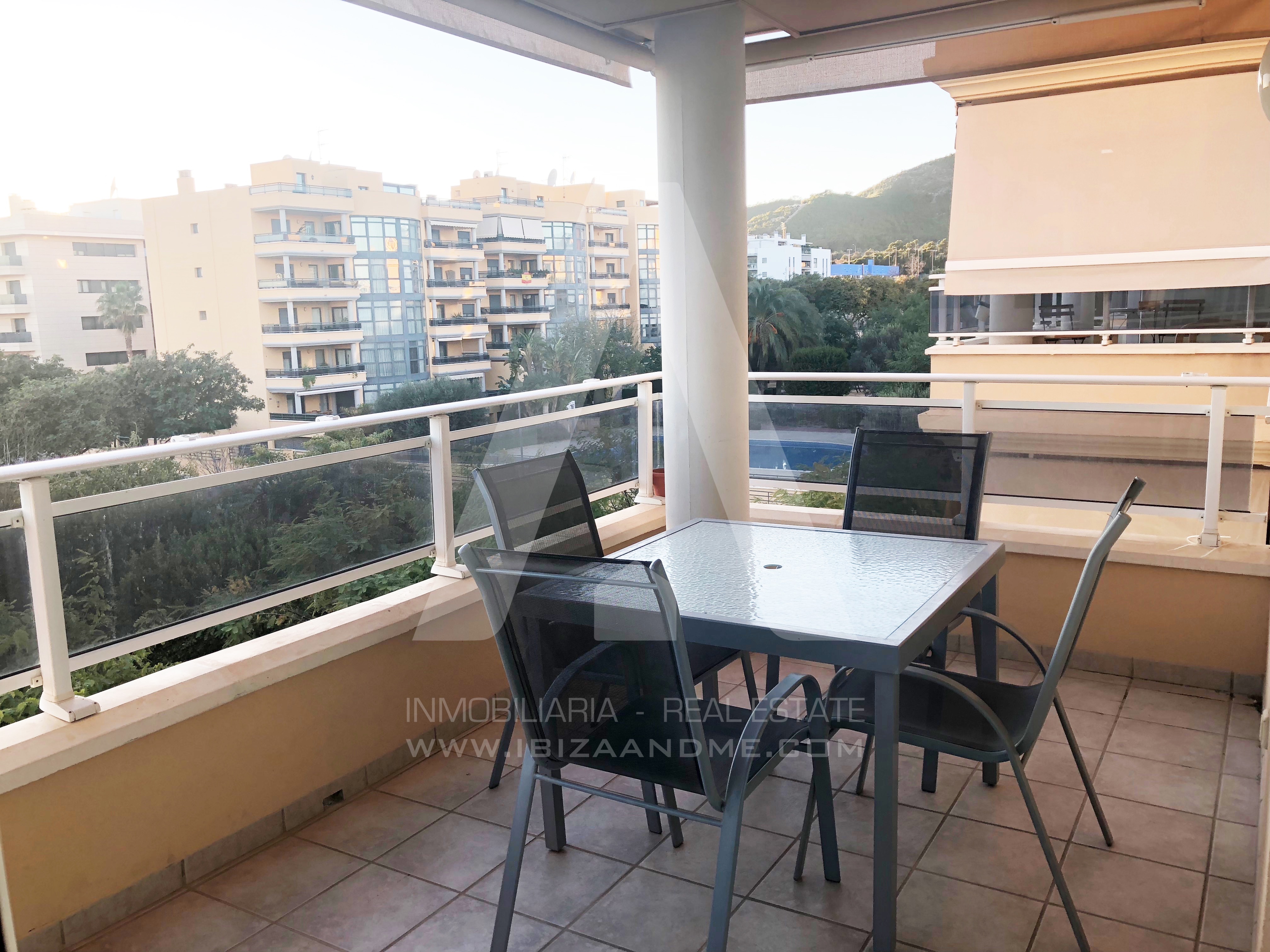 Bonito piso en urbanización exclusiva ubicada en la zona de Can Misses. Con tres habitaciones y dos WC, encontramos un amplio salón comedor y una práctica cocina con lavadero. En el exterior se puede disfrutar de amplias zonas comunes ajardinadas y una piscina comunitaria. Cuenta con una terraza de 12m2 y dos plazas de garaje.