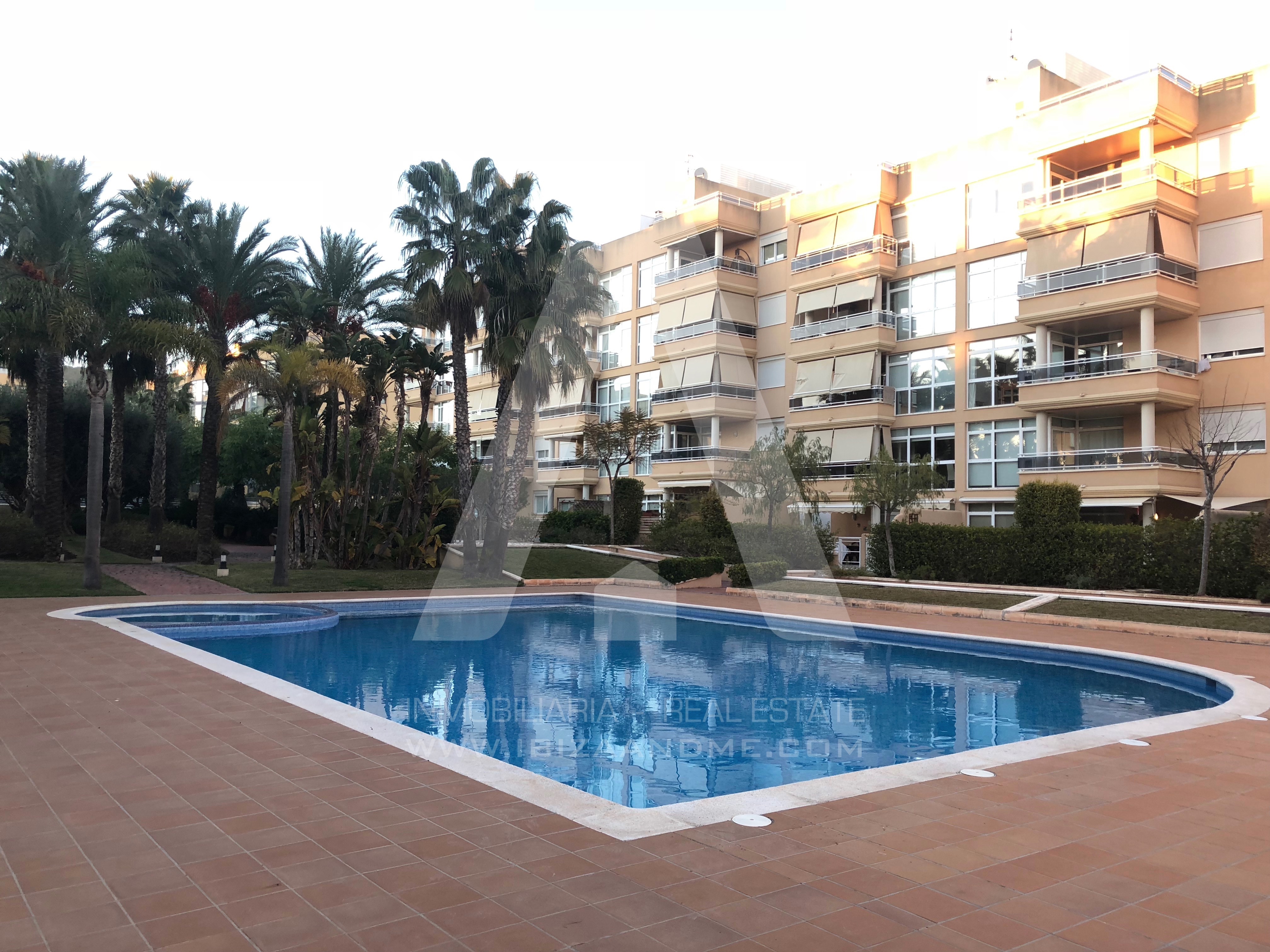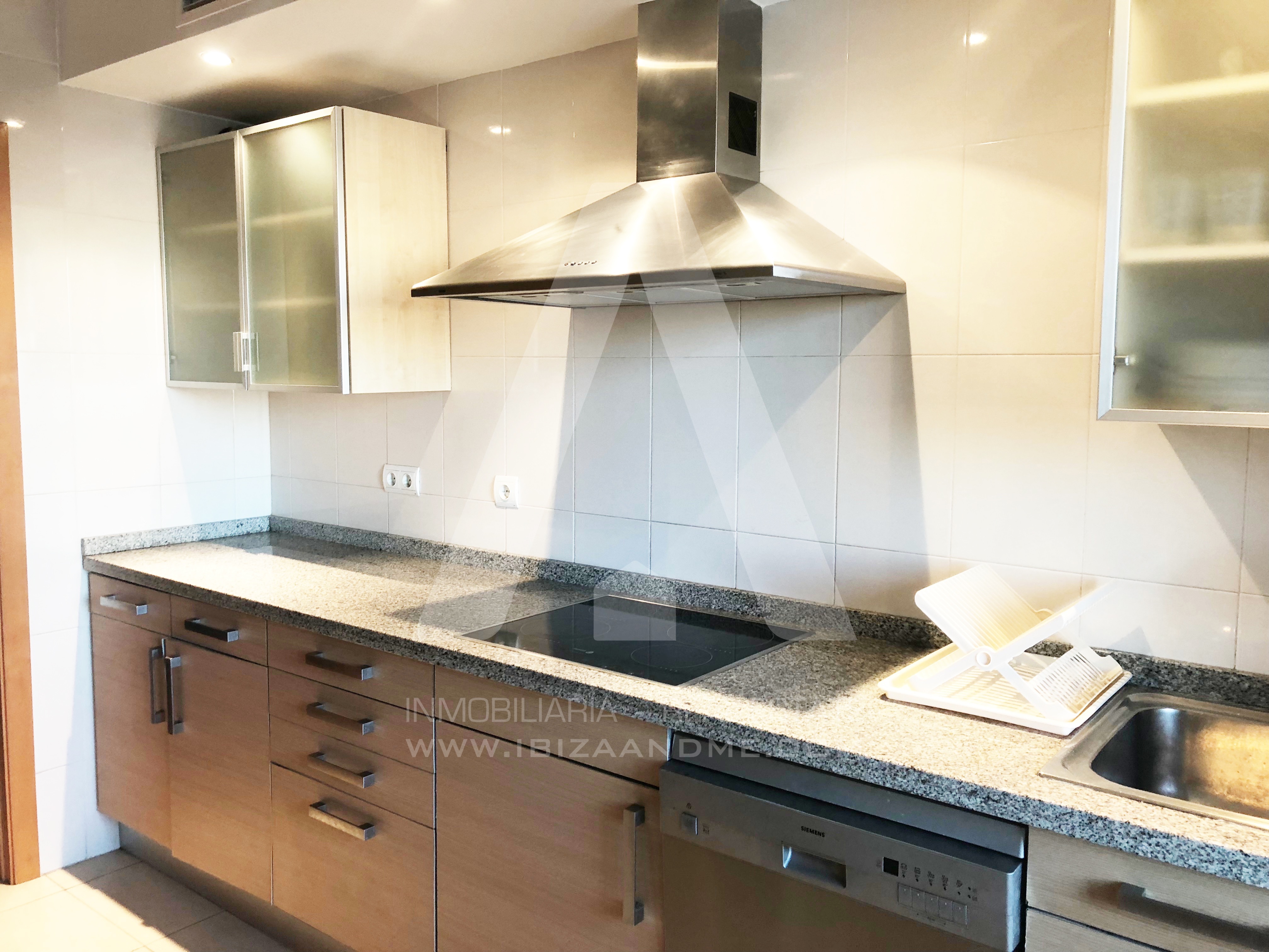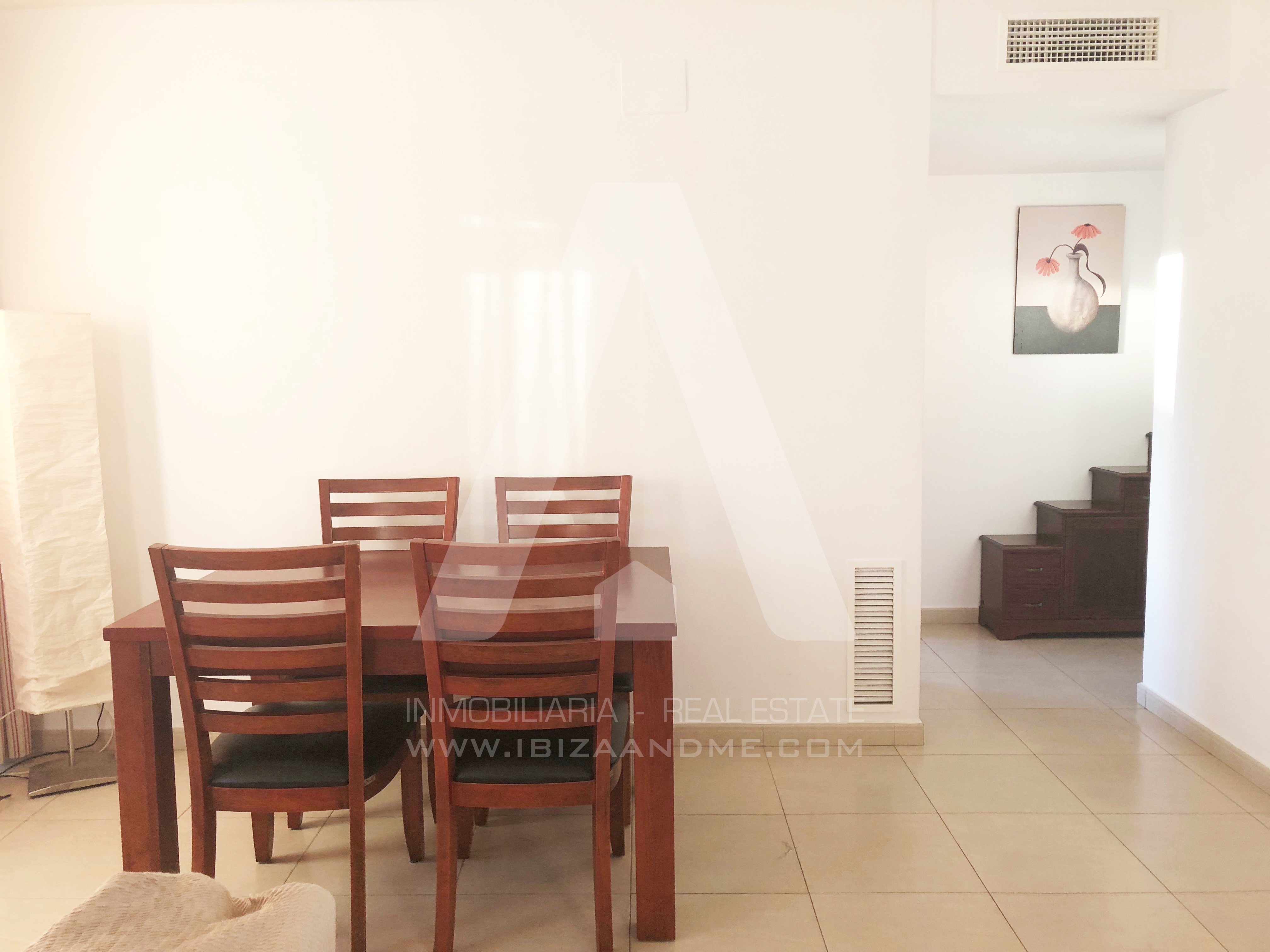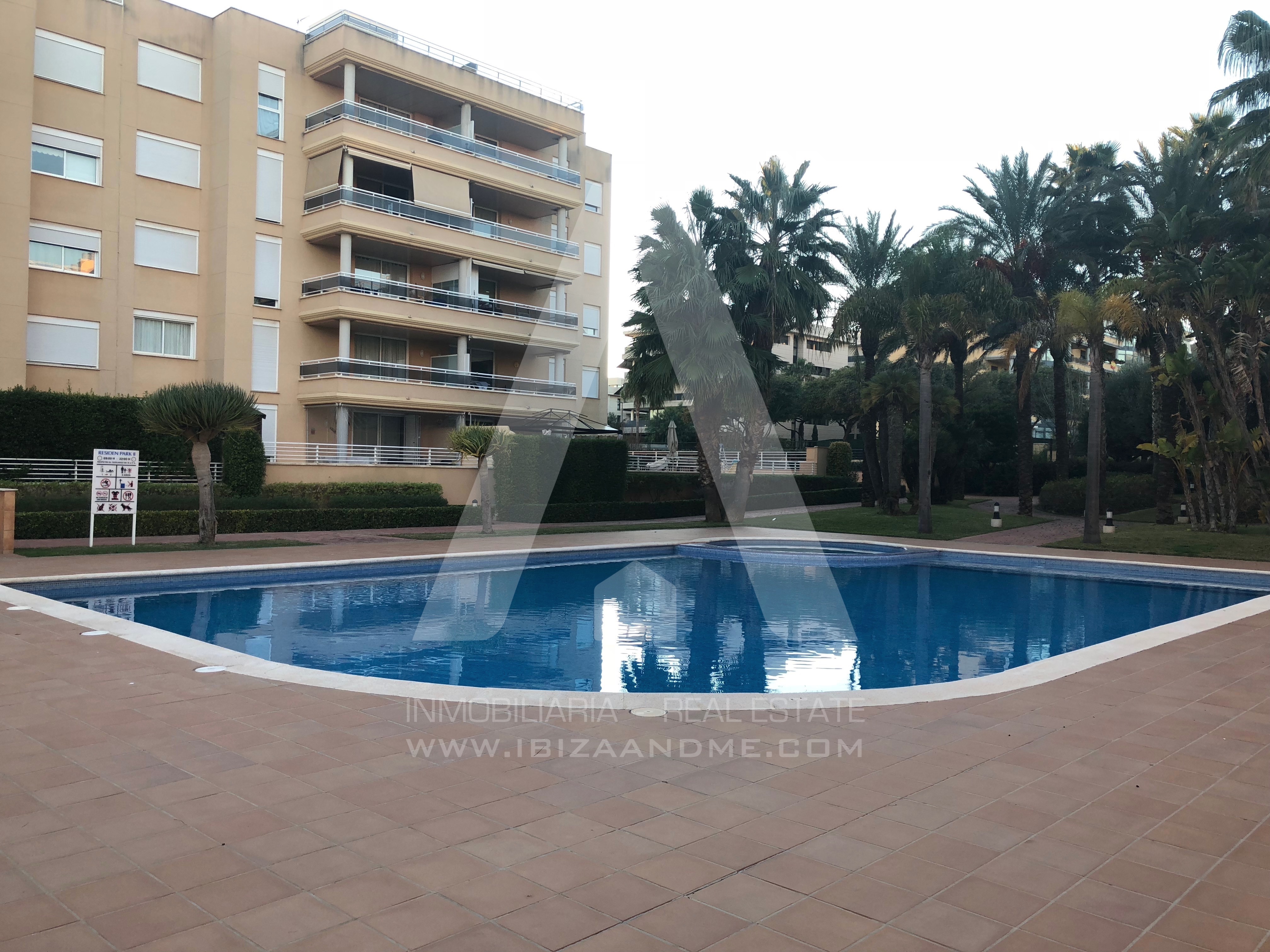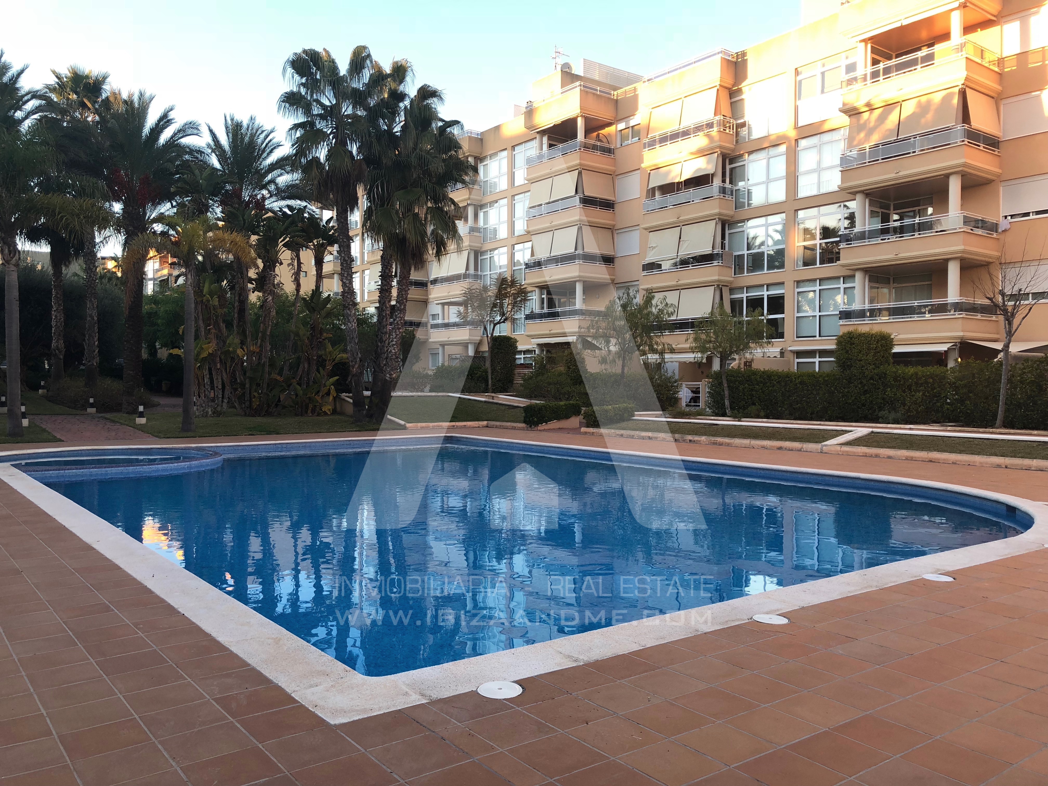 Bonito piso en urbanización exclusiva ubicada en la zona de Can Misses. Con tres habitaciones y dos WC, encontramos un amplio salón comedor y una práctica cocina con lavadero. En el exterior se puede disfrutar de amplias zonas comunes ajardinadas y una piscina comunitaria. Cuenta con una terraza de 12m2 y dos plazas de garaje.