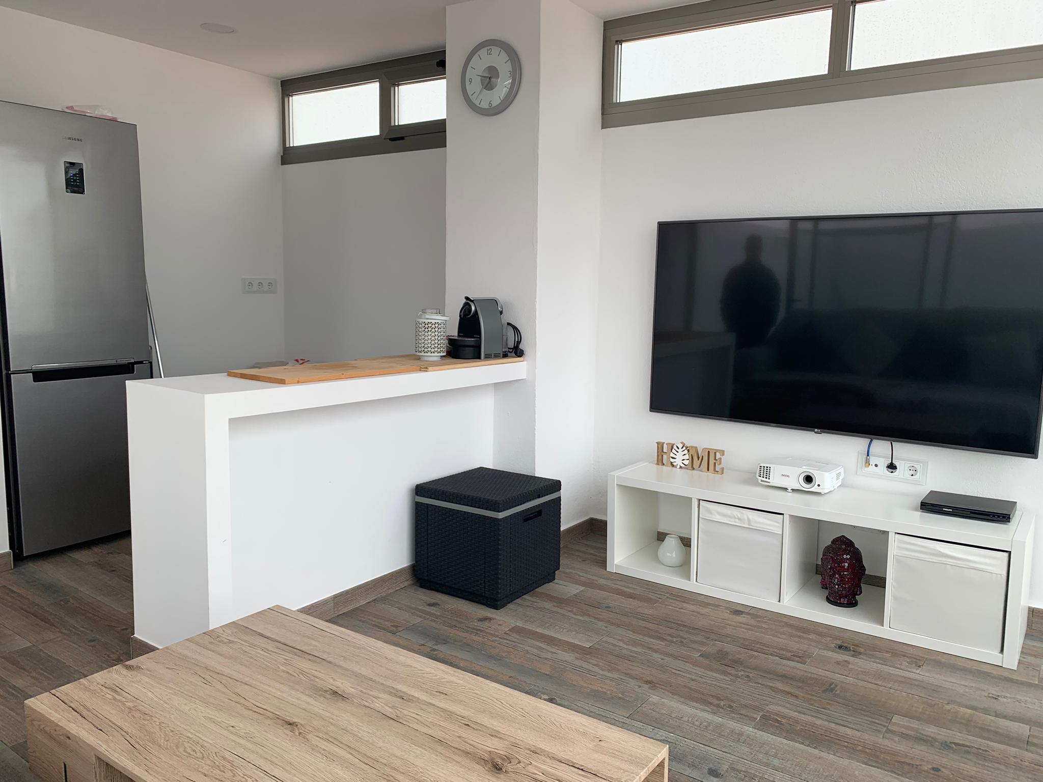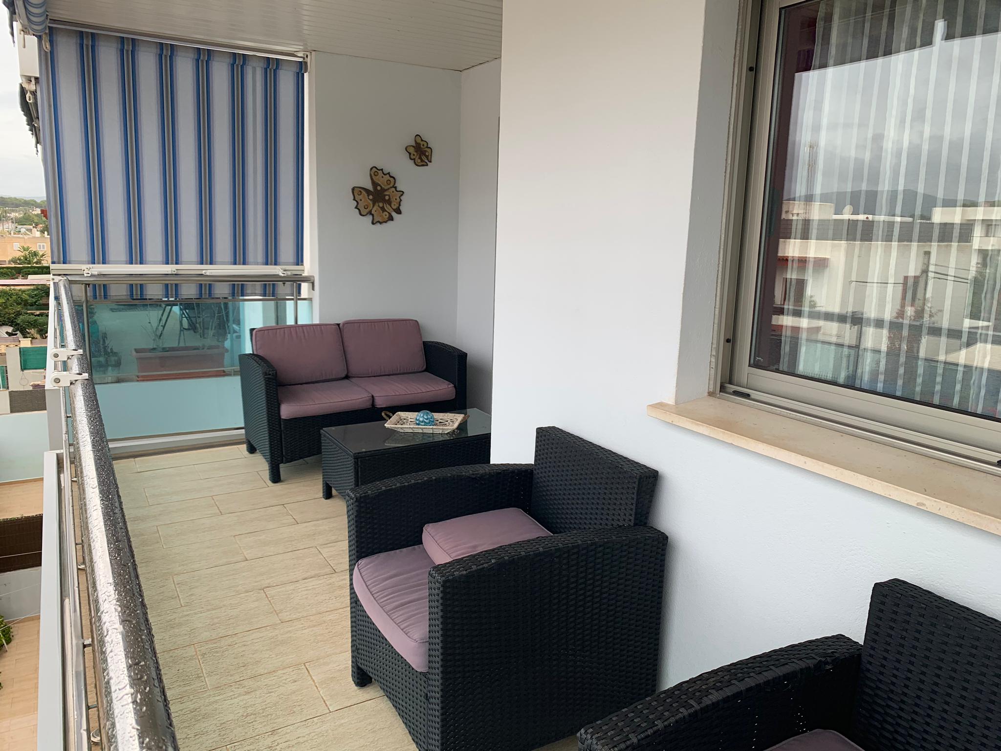 Bonito piso de tres habitaciones. Ubicado a escasos minutos andando del puerto, cuenta con un total de 100m, en los que encontramos un amplio salón con acceso al balcón, cocina independiente totalmente equipada y dos habitaciones con dos cuartos de baño, uno de ellos en suite, además de un vestidor. Con acceso privado al ático, cuenta con un apartamento en el que encontramos otra habitación y otro cuarto de baño. Dispone de aire acondicionado frío-calor y una plaza de garaje en el edificio.