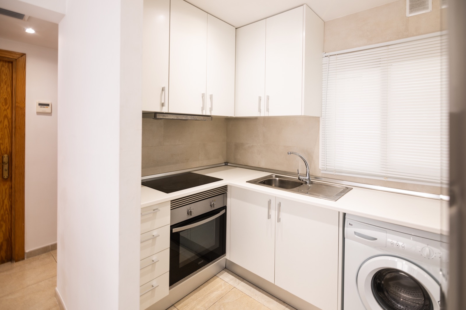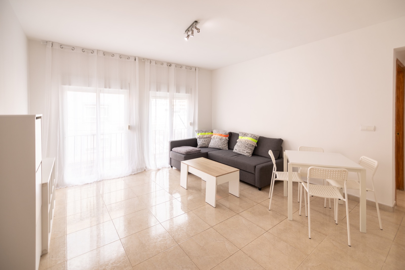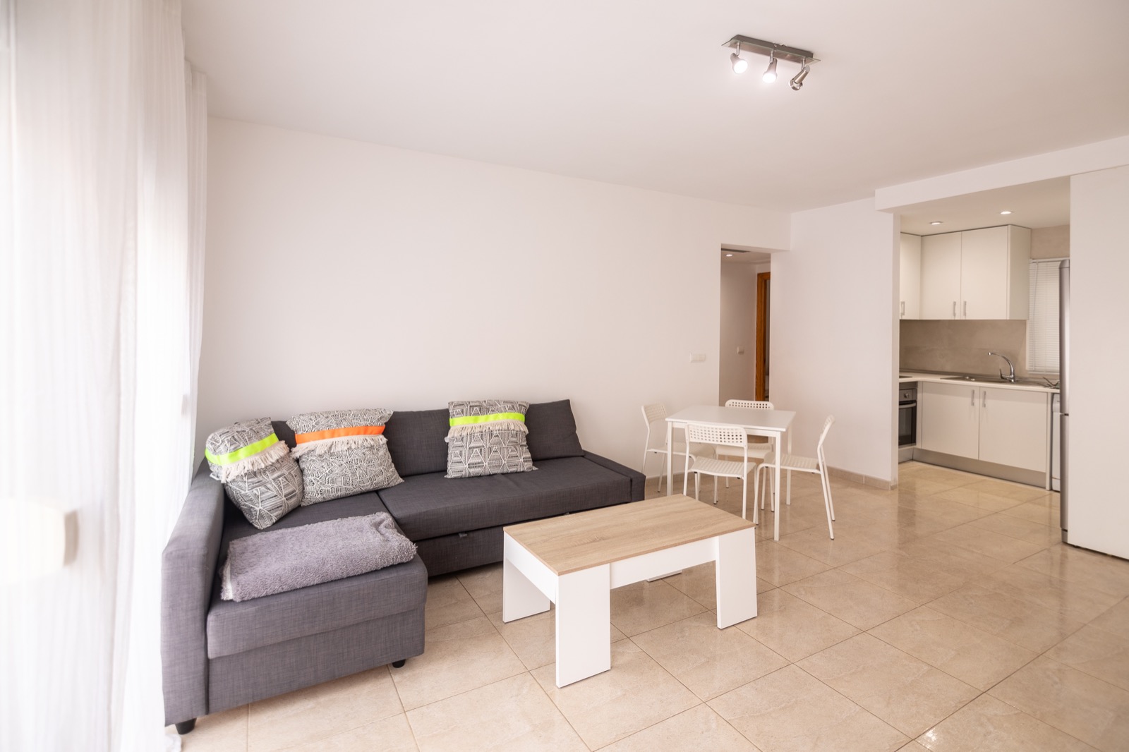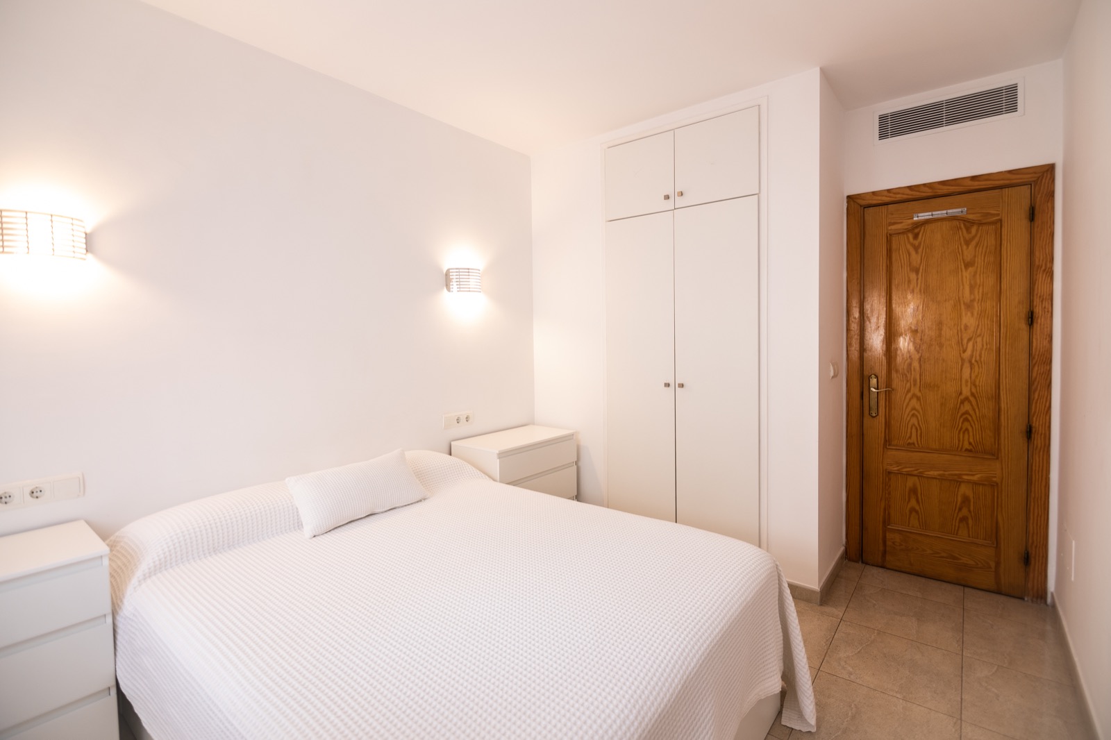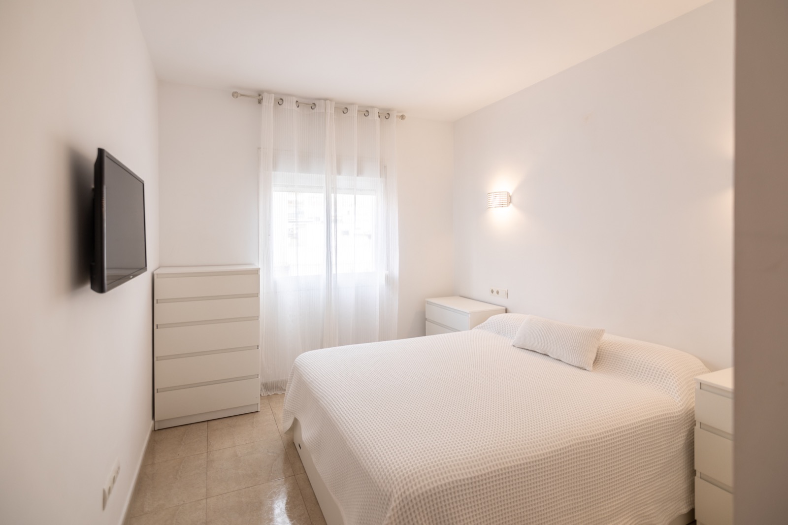 Bonito apartamento totalmente reformado ubicado a escasos metros de la playa de Figueretas. Con 60m, esta segunda planta cuenta con dos habitaciones, un amplio salón comedor y cocina independiente totalmente equipada. La vivienda cuenta con aire acondicionado centralizado.