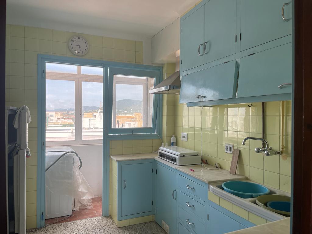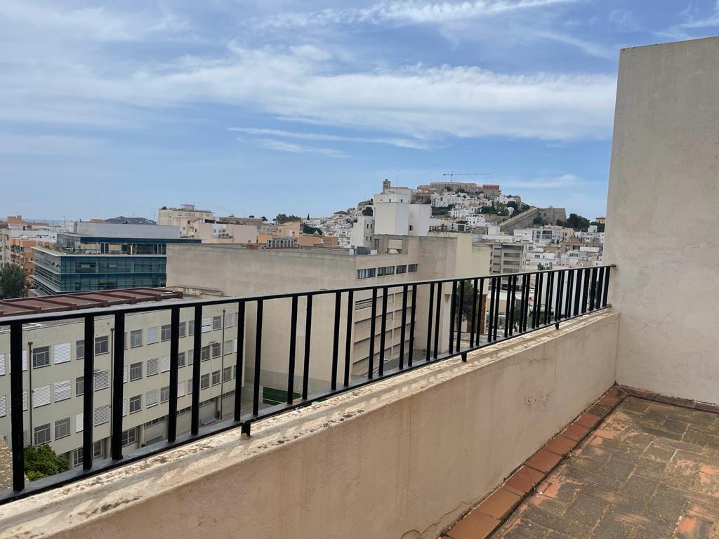 Ático ubicado en el centro de Ibiza Ciudad. Con aproximadamente 100m2, el piso, ubicado en una séptima planta, cuenta con tres habitaciones, un amplio salón comedor, cocina independiente, y unas bonitas vistas a Dalt Vila.