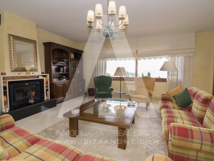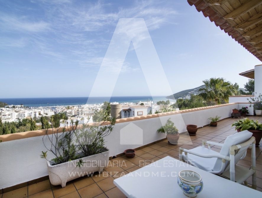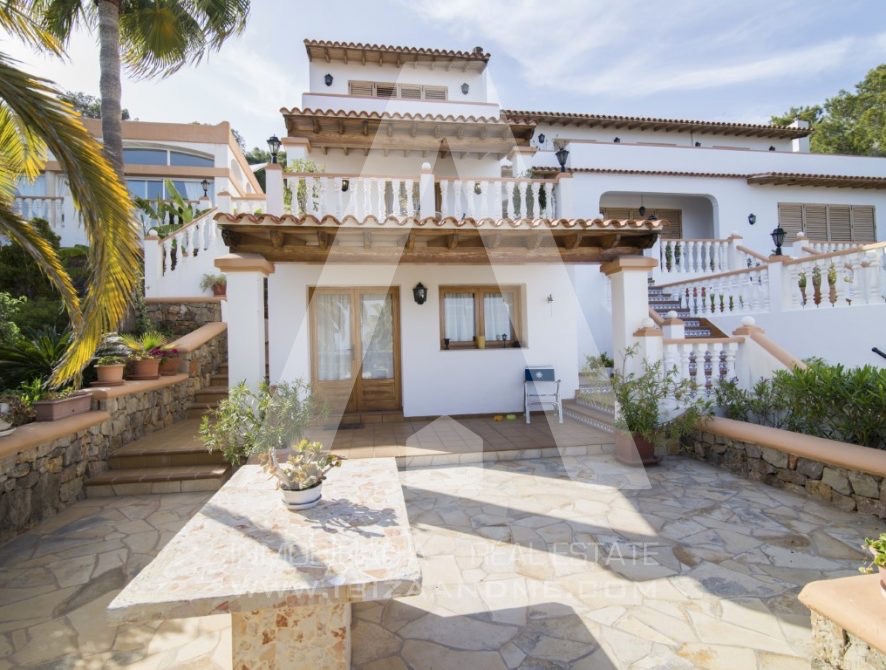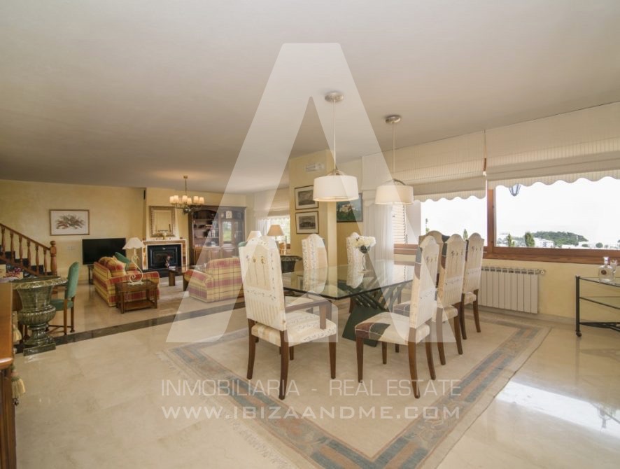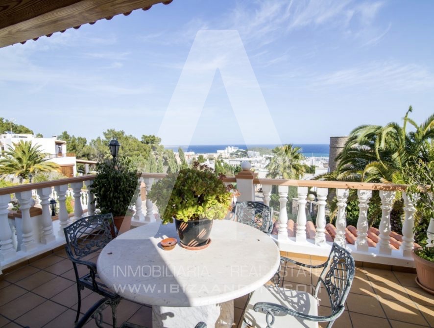 Se trata de una propiedad de 560 m2 y 3 alturas construida en 1995 siguiendo el estilo clásico de entonces, dominando y siendo una de las casas con mejores vistas sobre el pueblo de Santa Eulalia.