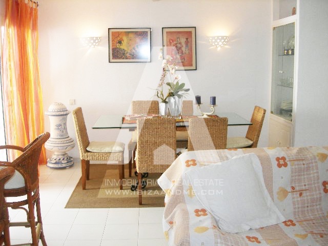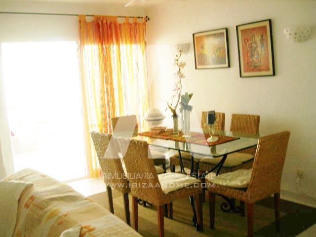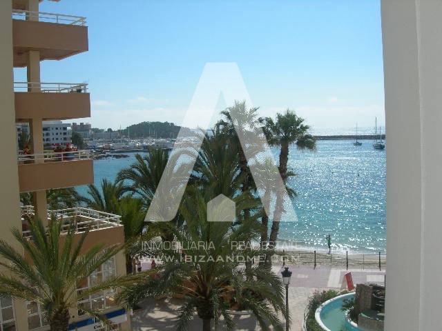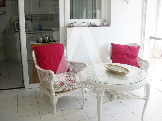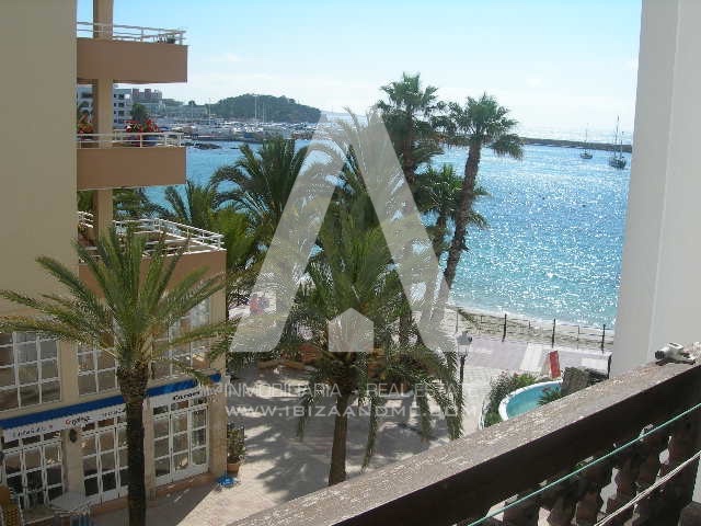 Espacioso piso con vistas al mar en el centro de Santa Eulalia. Con 3 habitaciones y 2 WC, cuenta con un amplio salón con cocina abierta y una bonita terraza. El precio incluye plaza de garaje.