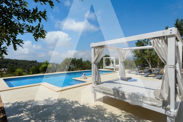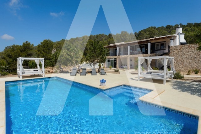 Bonita villa de 250m2 ubicada en el sur de Ibiza, en la carretera San Jose. Con vistas al mar y a Cala Jondal, cuenta con 32.000 m2 parcela.
