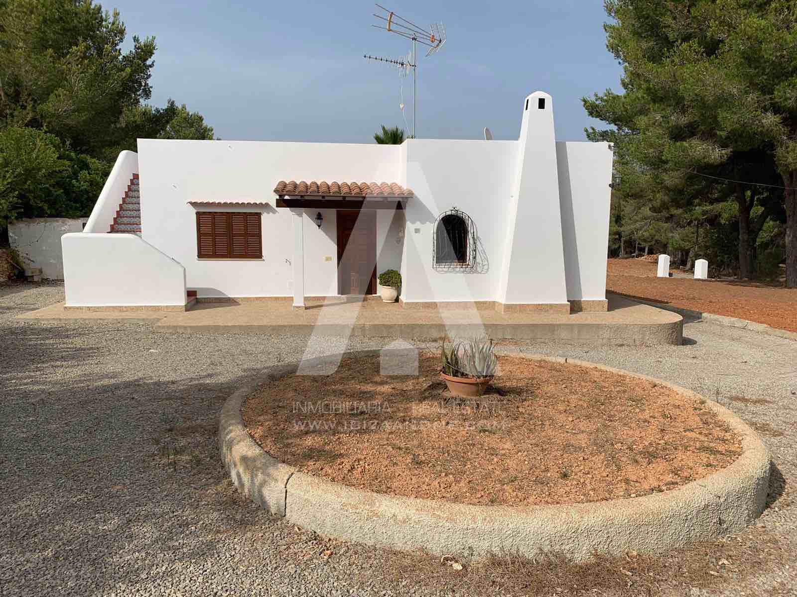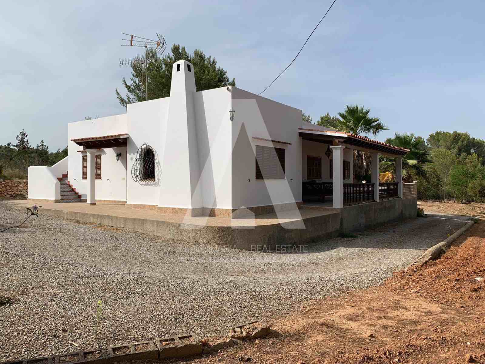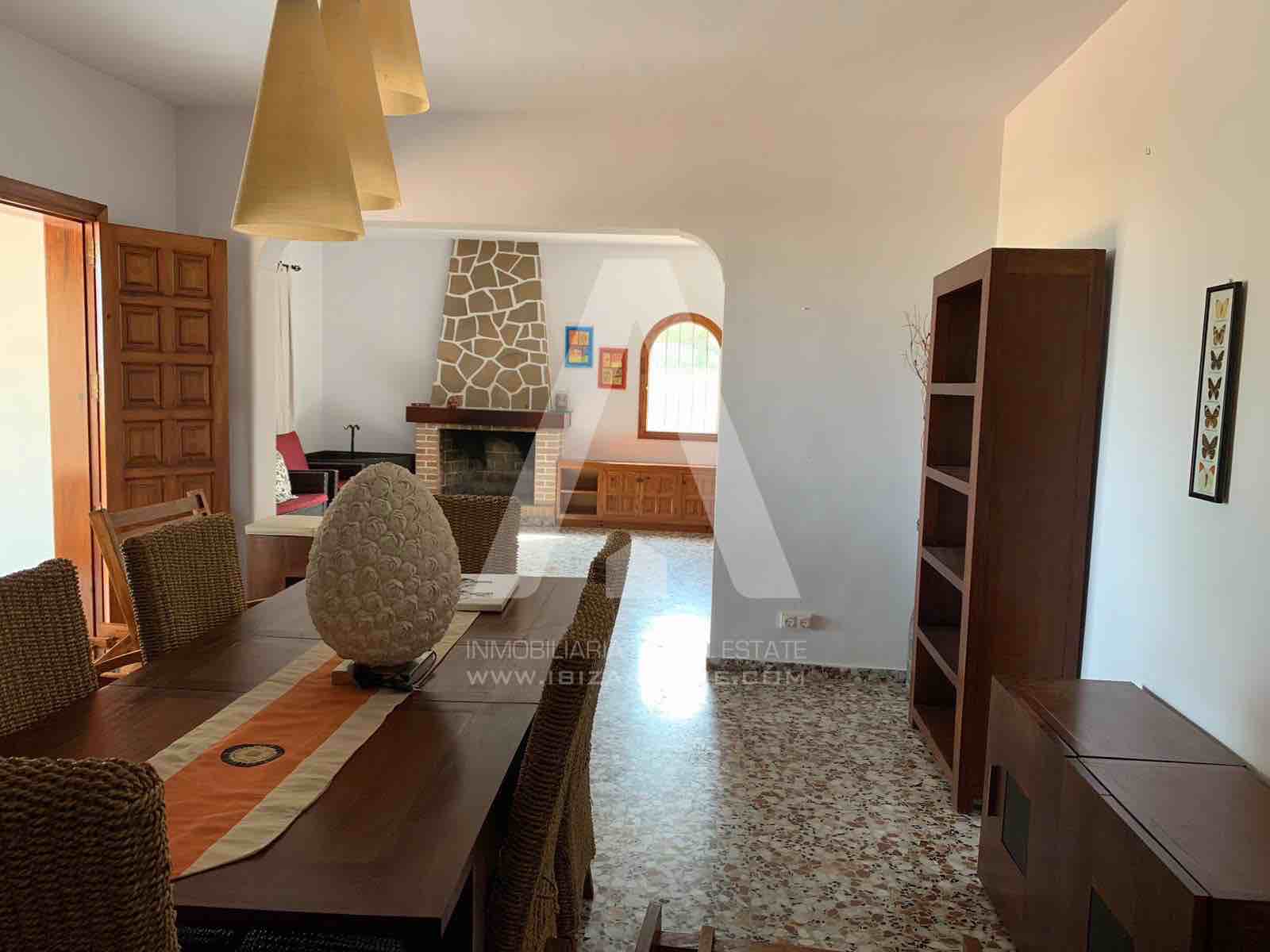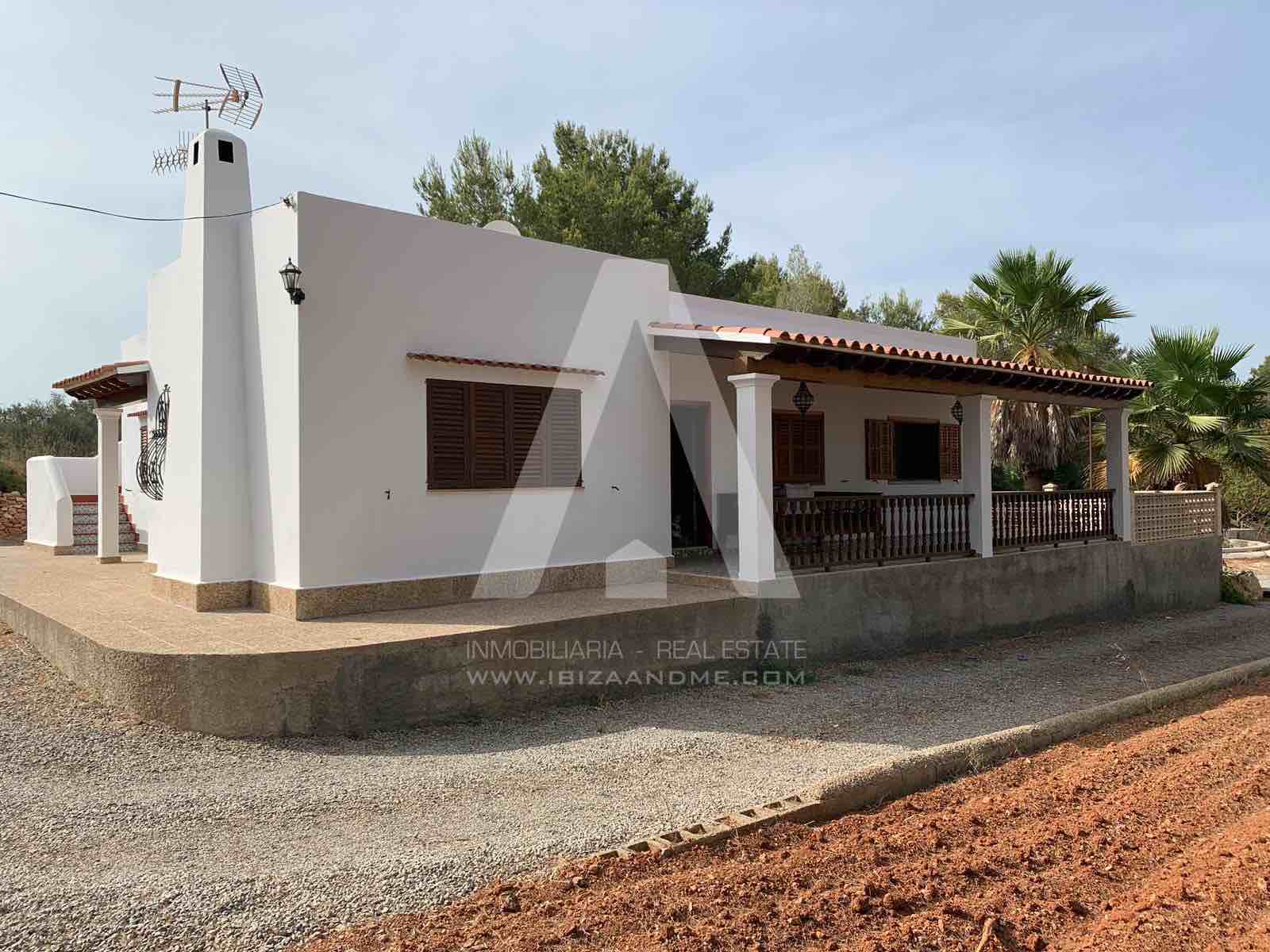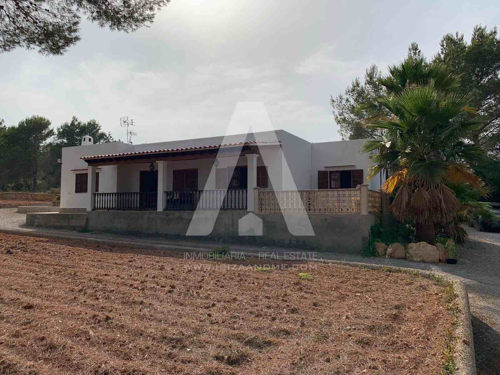 Bonita casa de campo ubicada en una parcela de 5.500m2 a escasos minutos del centro de Santa Eulalia. Con varias zonas de sombra y porches en el exterior, en el interior encontramos tres habitaciones y tres WC, además de un amplio salón y cocina con despensa.