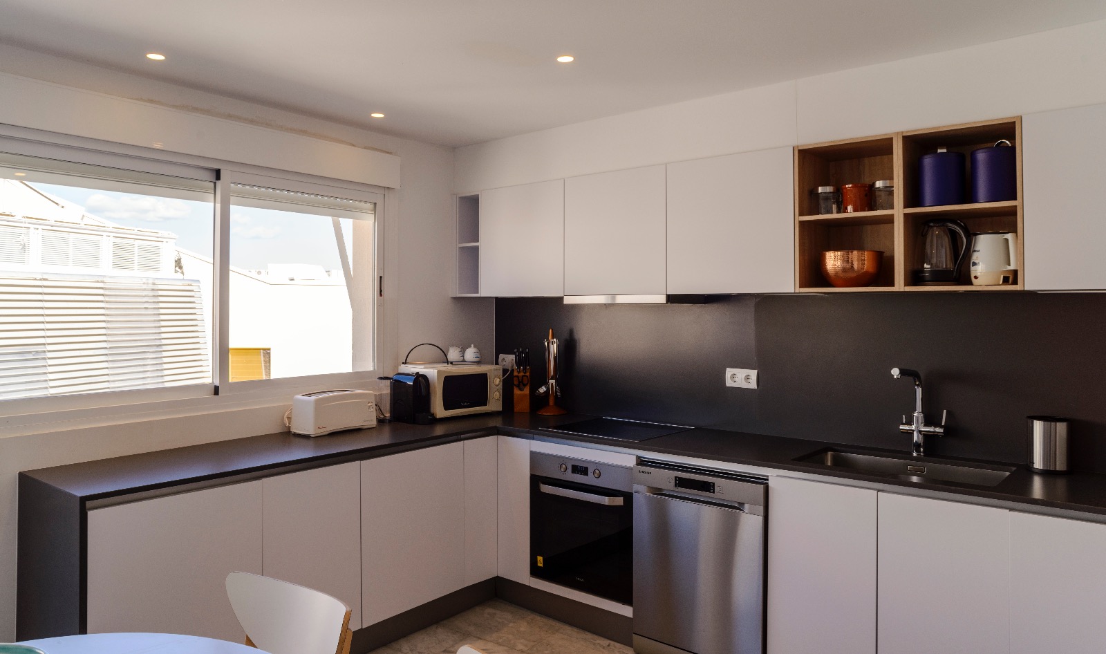 Con una superficie de 200m2, la vivienda cuenta con cinco habitaciones y cuatro cuartos de baño, tres de ellos en suite, además de un espacioso salón comedor con capacidad para catorce personas y salida al exterior, además de una amplia cocina independiente totalmente equipada.
