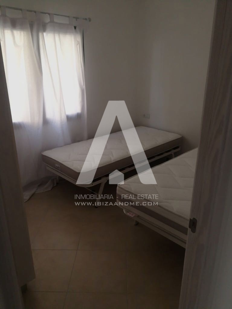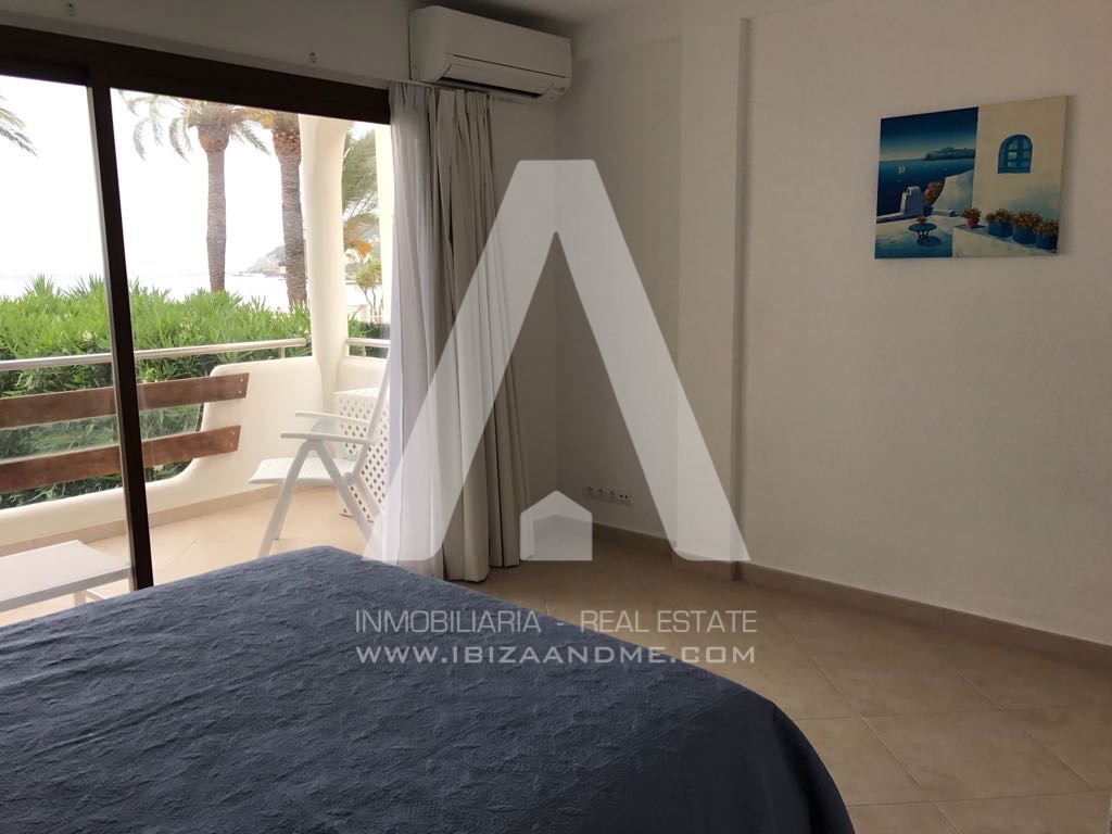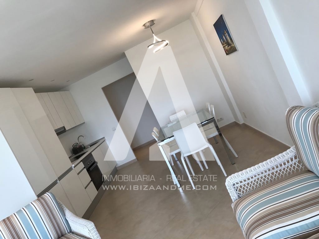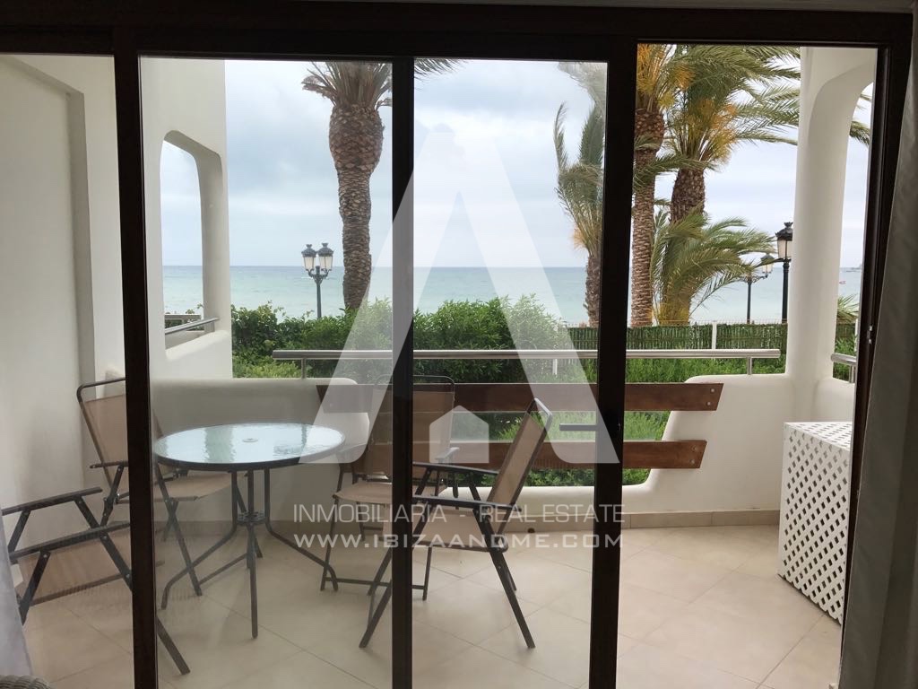 Bonito piso reformado en primera línea de la Playa de Santa Eulalia. Con tres habitaciones, un cuarto de baño y un aseo, cuenta con un amplio salón con cocina en office, además de un pequeñó lavadero. En el exterior encontramos una plaza de aparcamiento al aire libre con acceso restringido a propietarios.