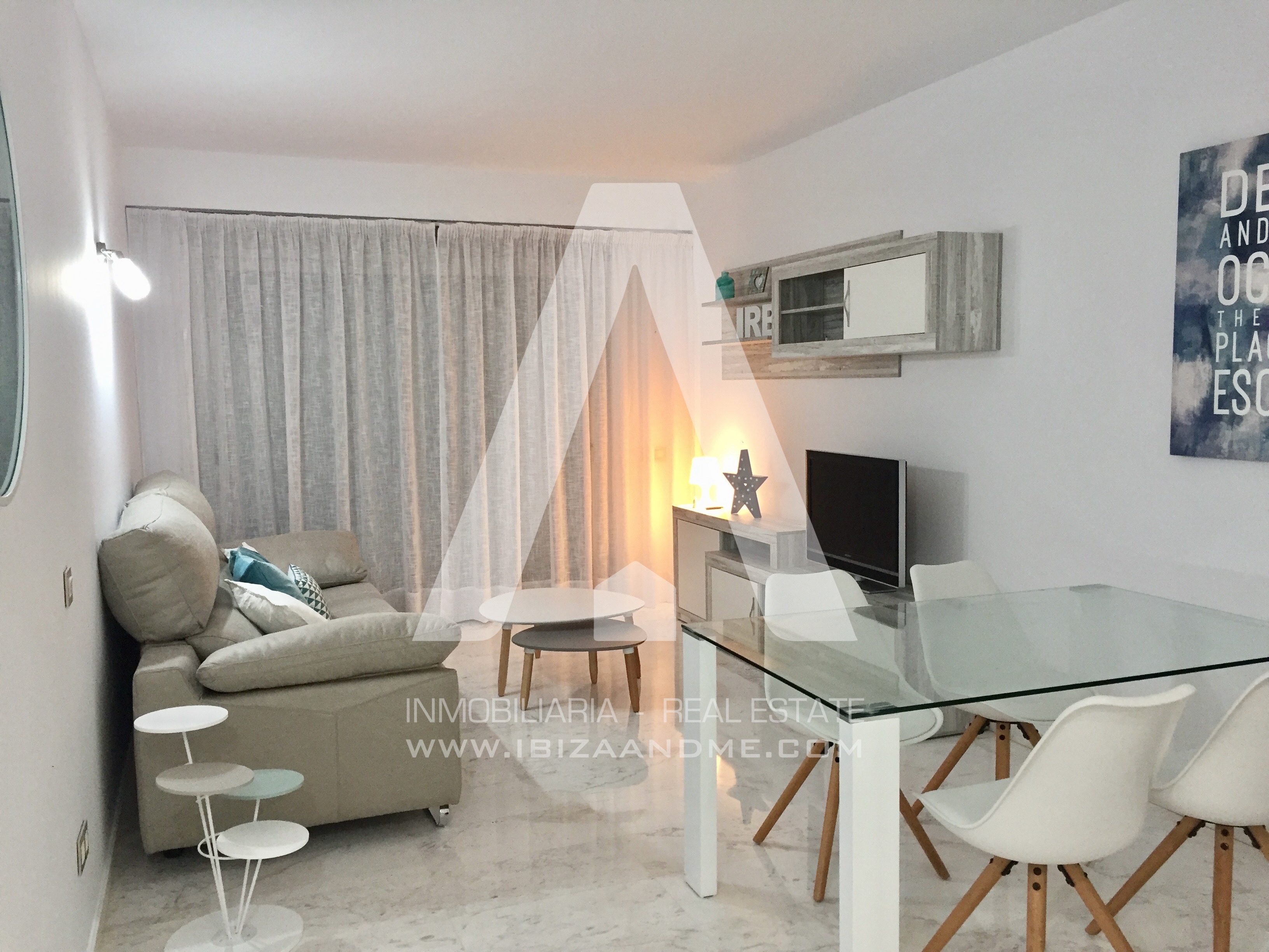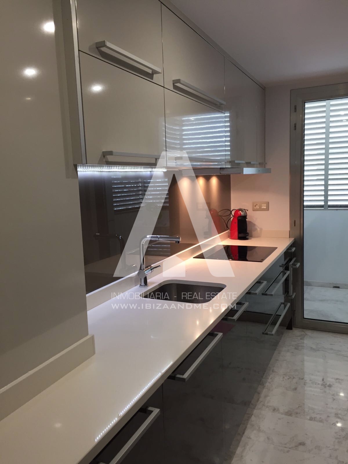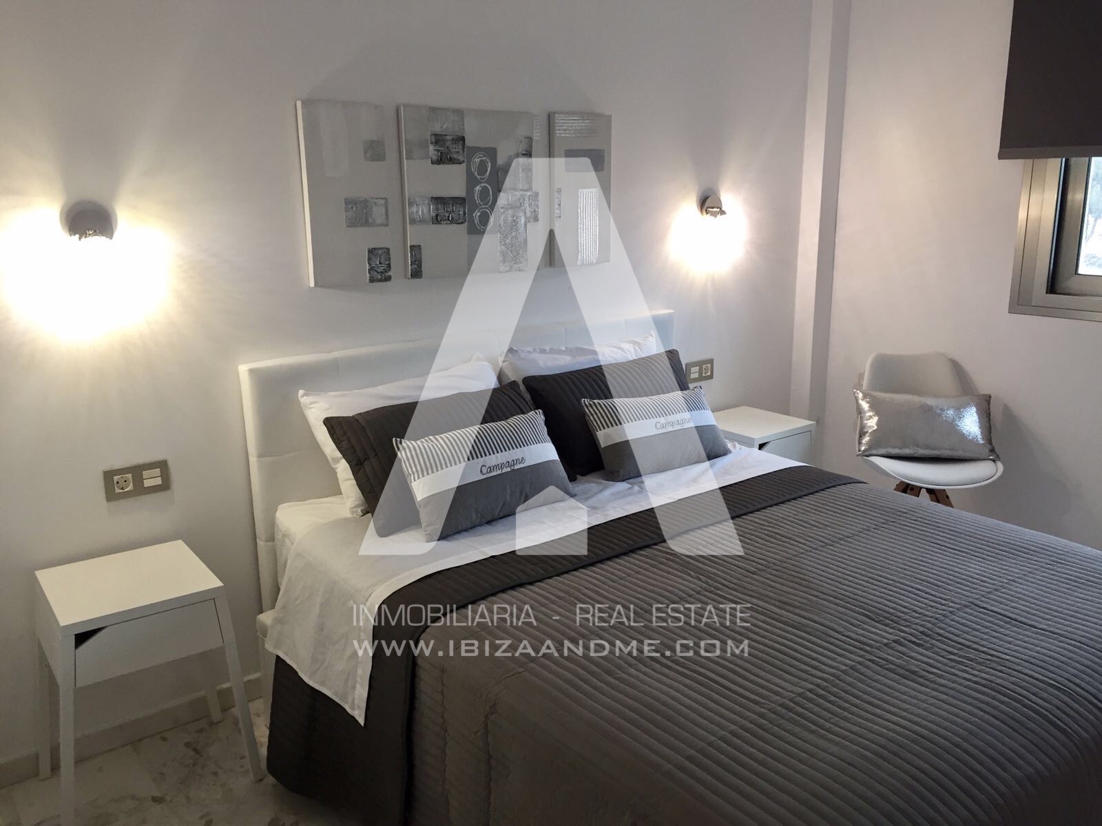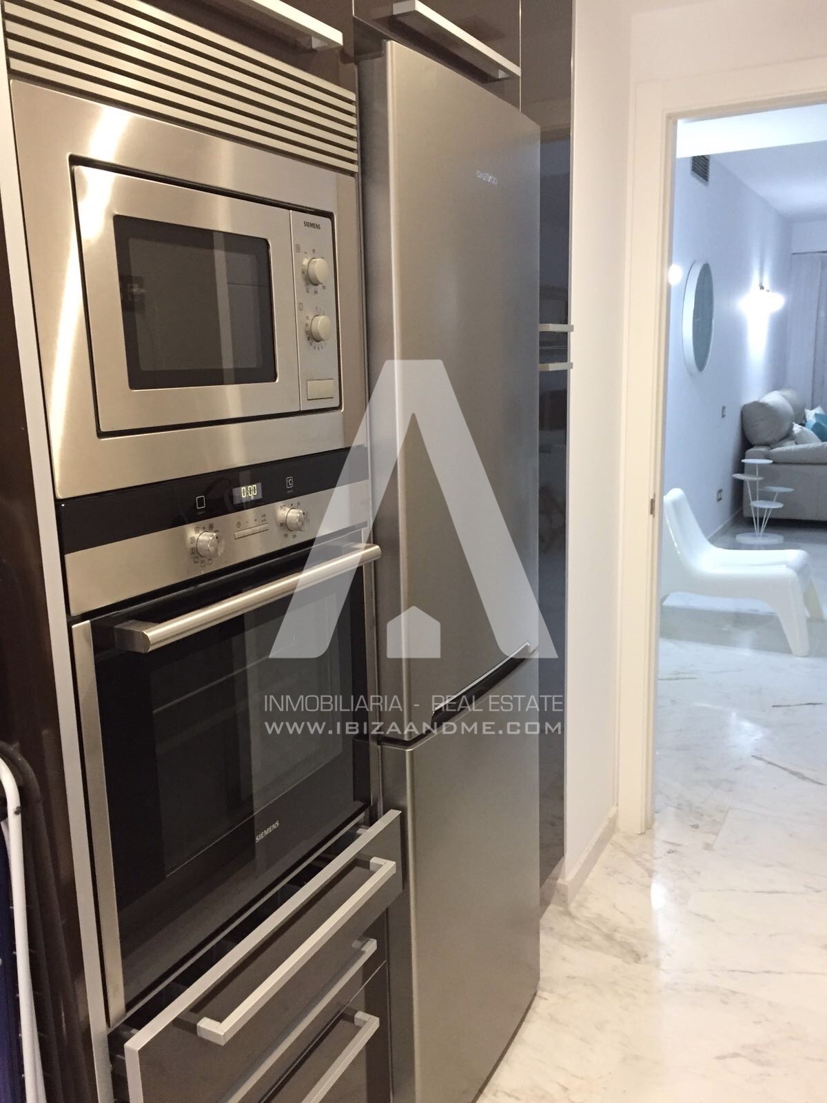 Apartamento a estrenar en primera línea de playa con vistas al mar y a la montaña, en urbanización de lujo, dispone de conserje 24 horas, entrada privada con acceso a la playa den bossa y una gran piscina con zona Chill out. Parada del ferry a Formentera y al puerto de Ibiza a solo 5 metros.