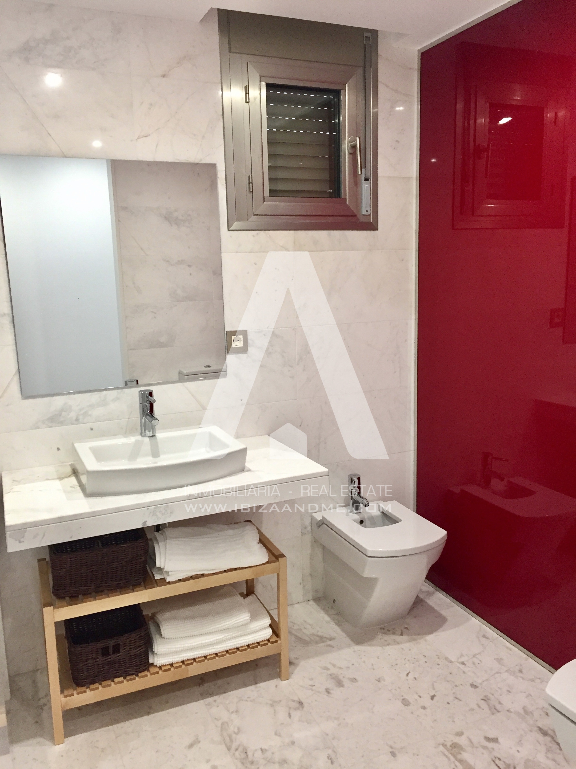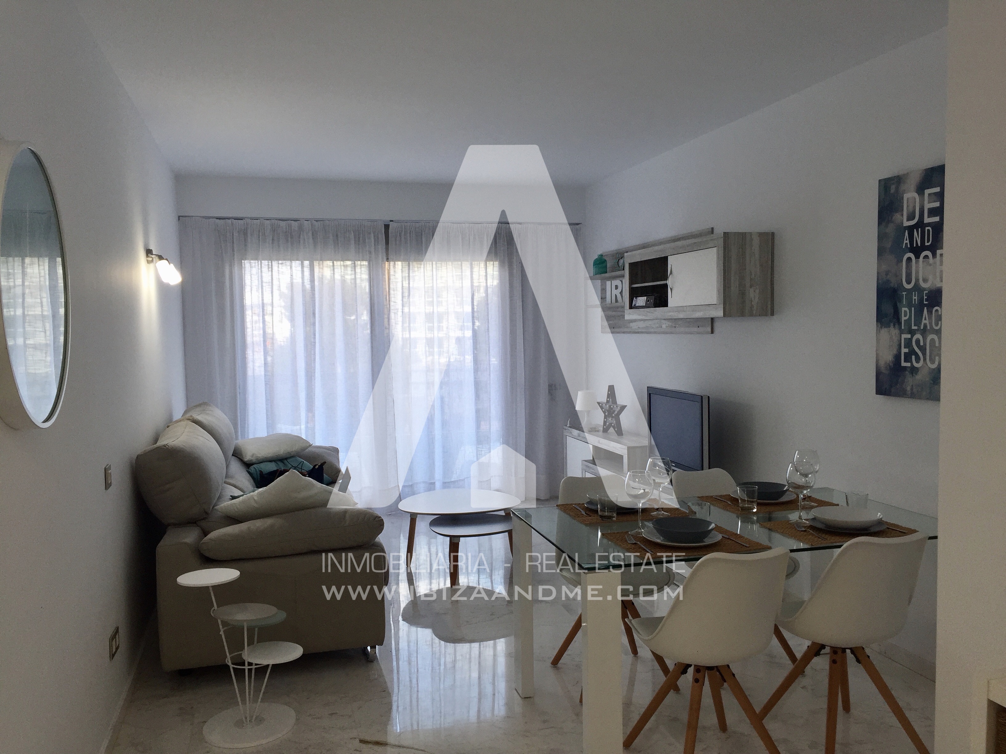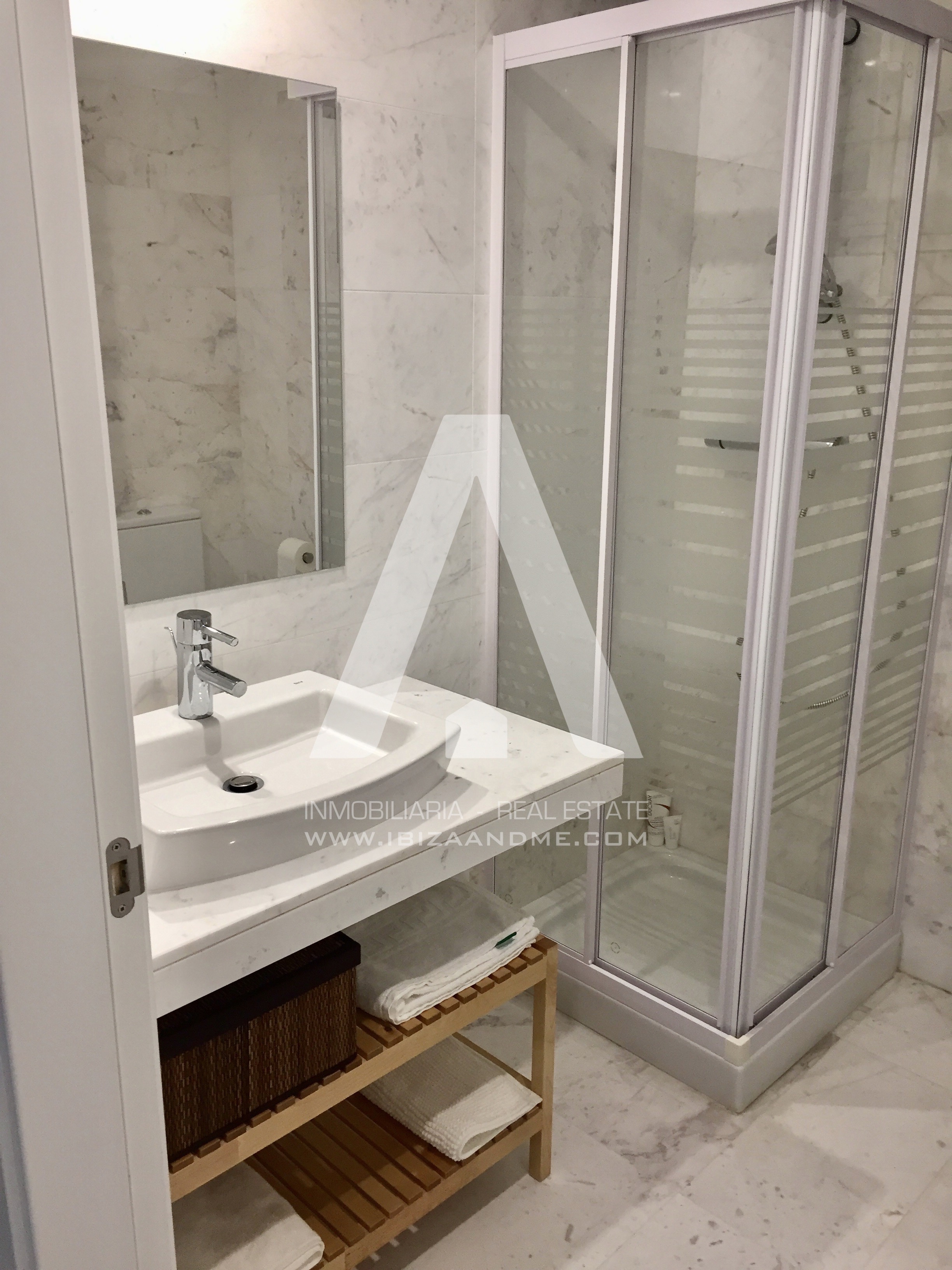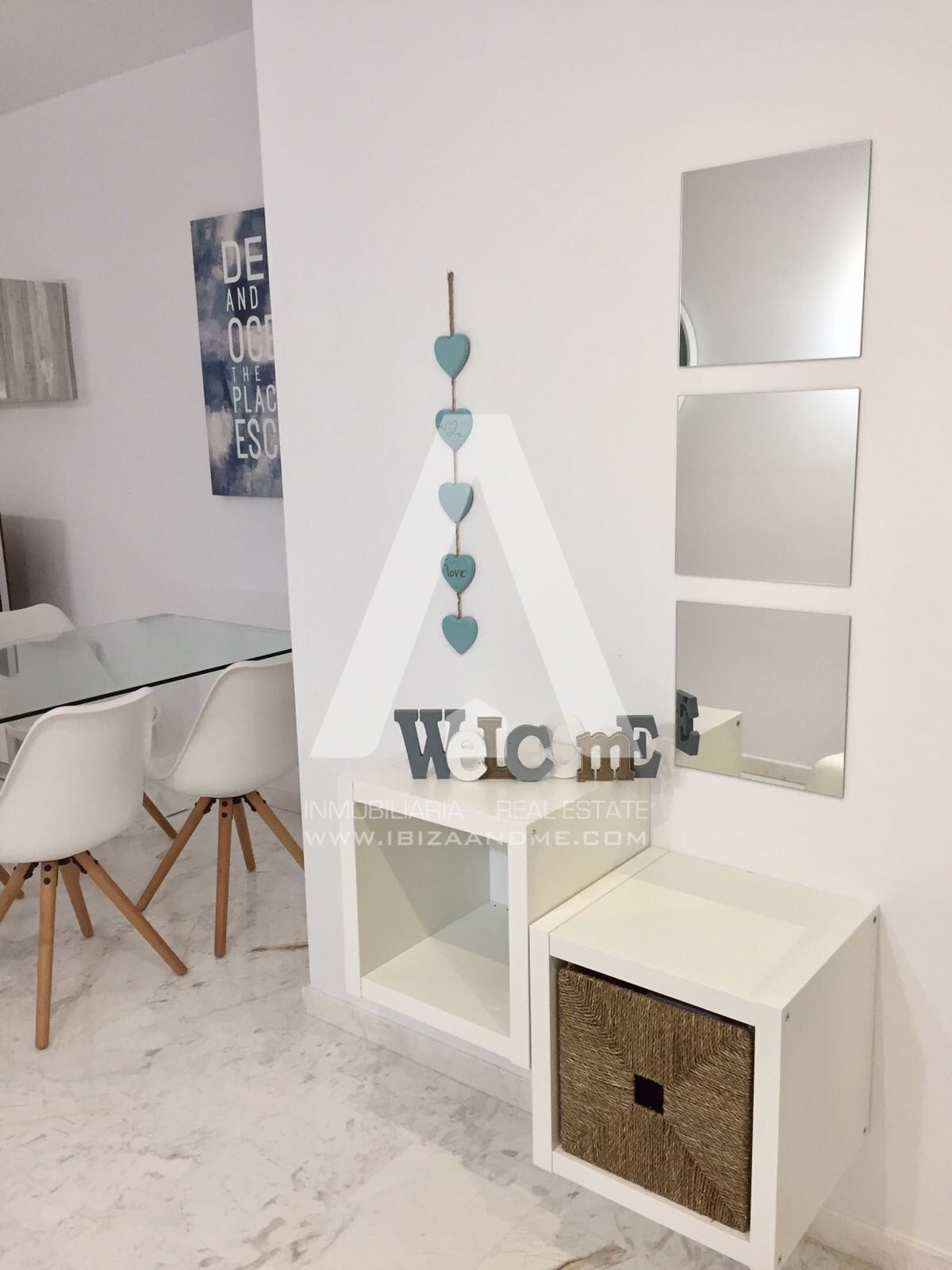 Apartamento a estrenar en primera línea de playa con vistas al mar y a la montaña, en urbanización de lujo, dispone de conserje 24 horas, entrada privada con acceso a la playa den bossa y una gran piscina con zona Chill out. Parada del ferry a Formentera y al puerto de Ibiza a solo 5 metros.