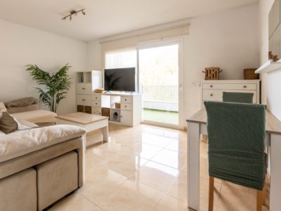 Acogedor estudio a pocos minutos de la Playa de Es Canar. Con unas dimensiones de 32 m2, encontramos un salón-dormitorio, cocina en office y aseo, así como un pequeño balcón.
