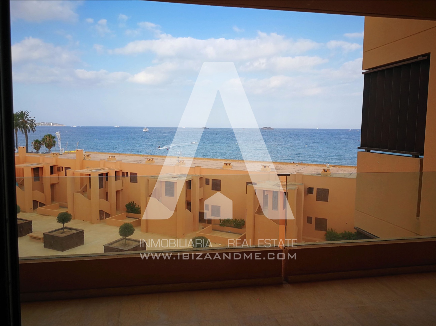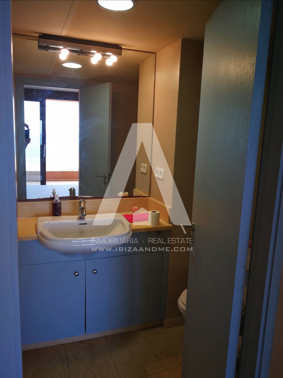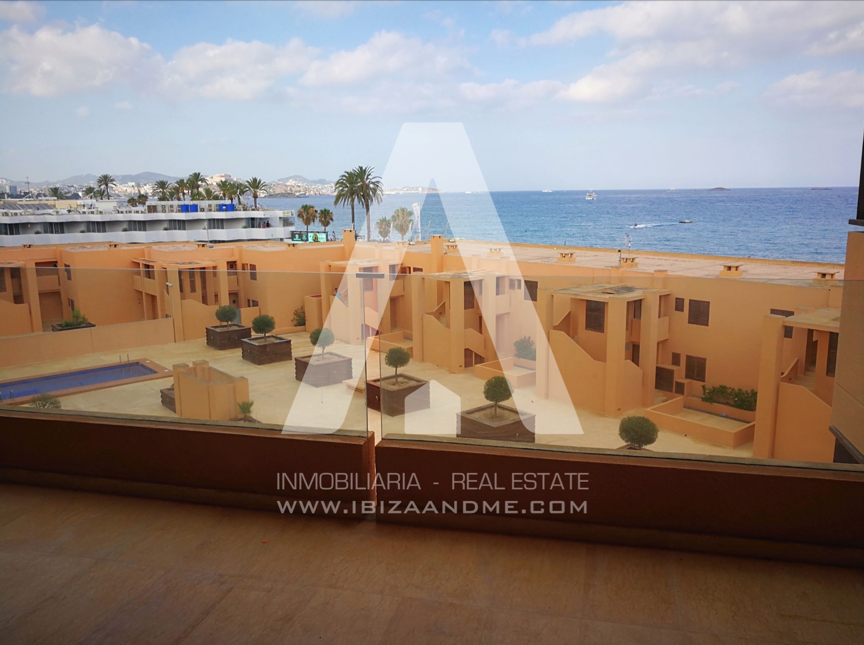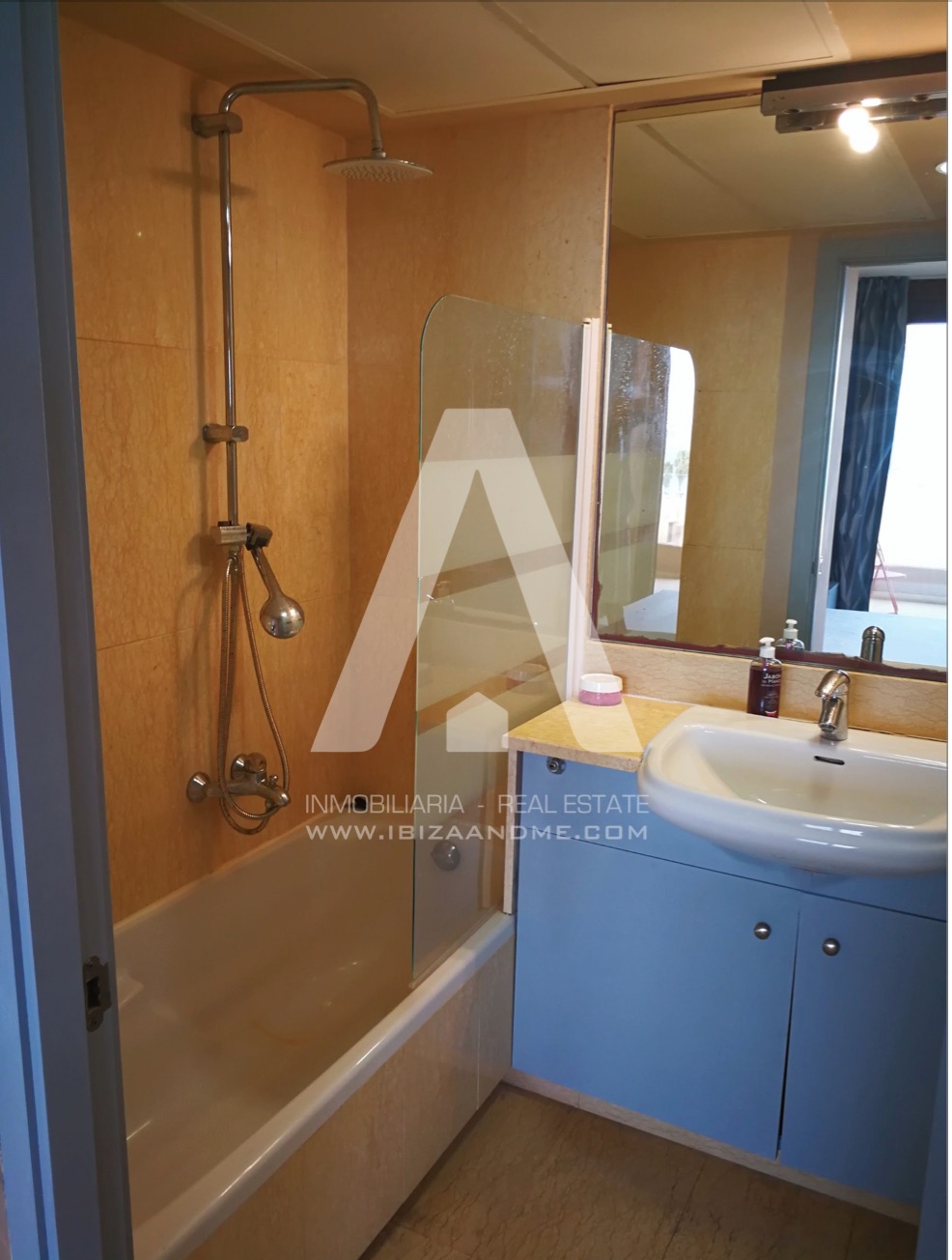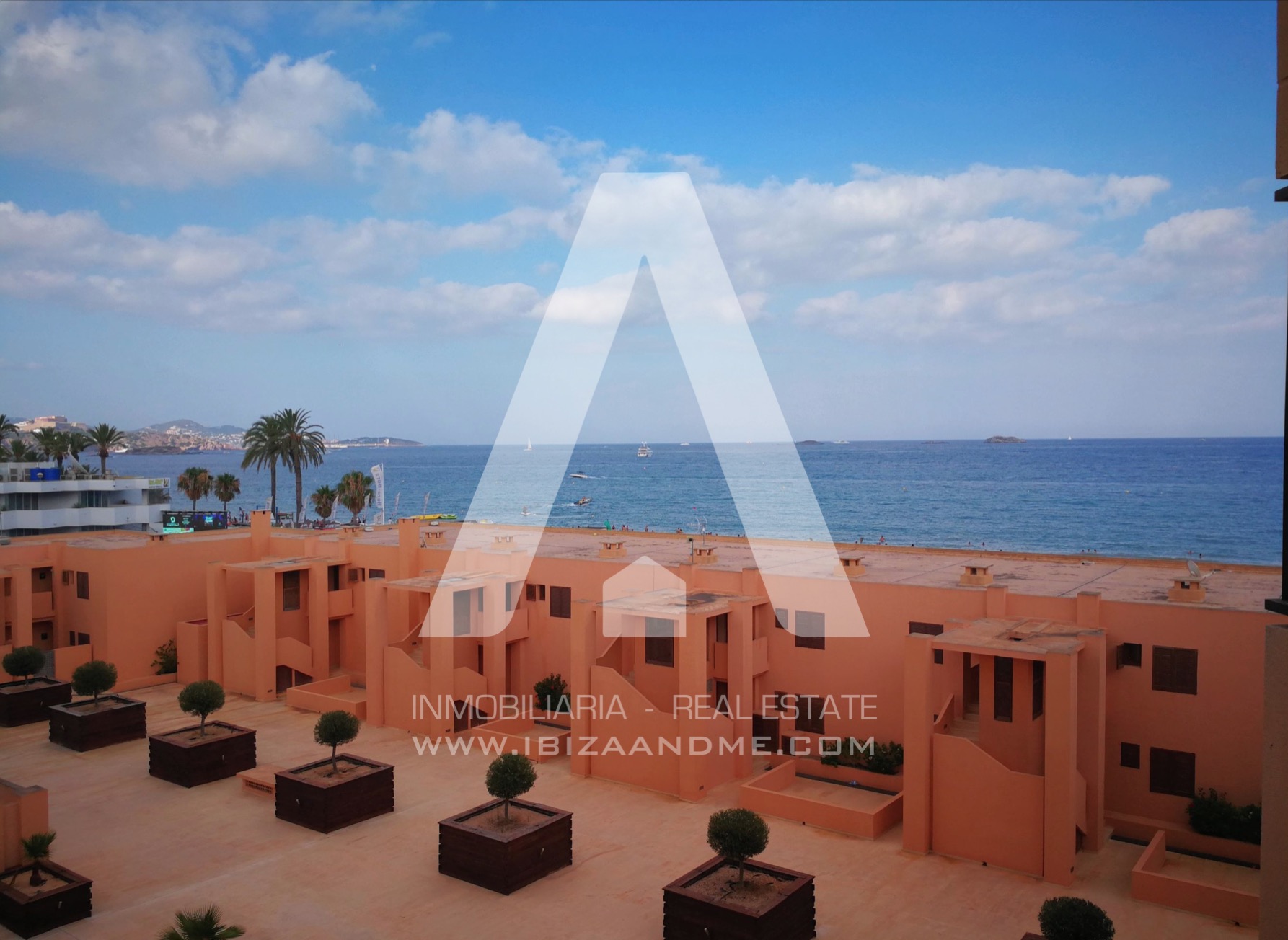 Bonito piso de dos habitaciones con vistas a la Playa de’n Bossa. Cuenta con piscina comunitaria, una pequeña terraza-balcón y plaza de párking. Encontramos un baño y un aseo, y aire acondicionado.