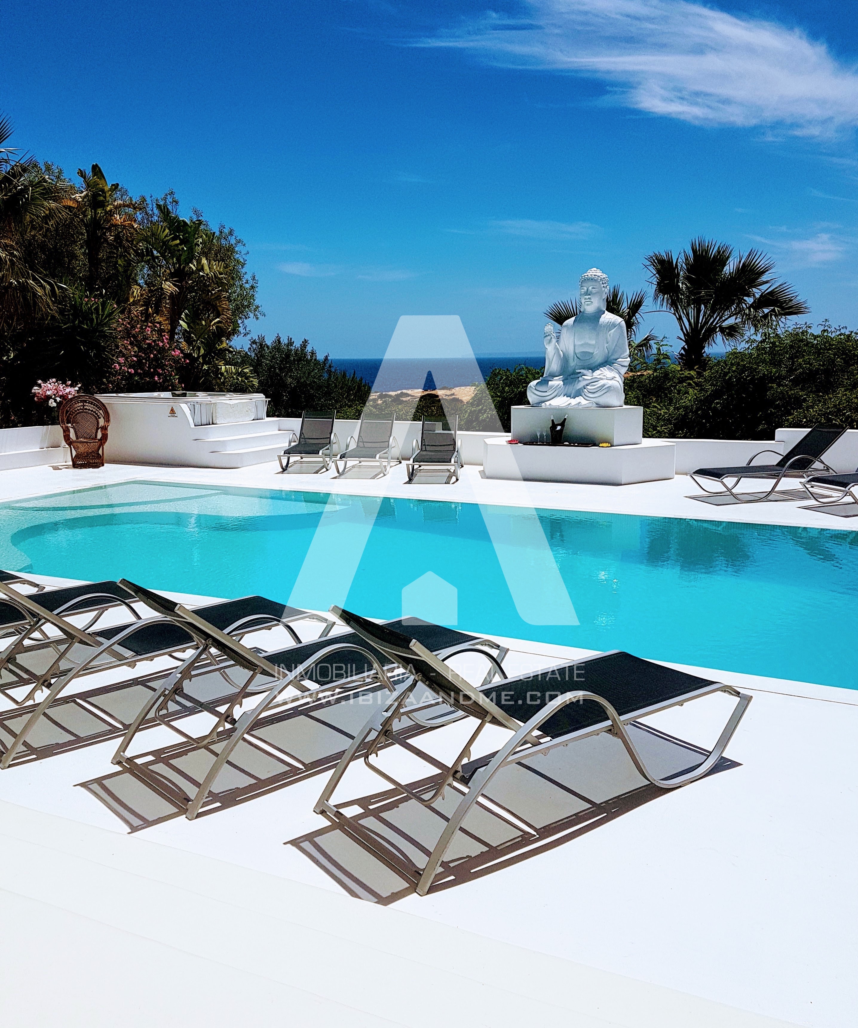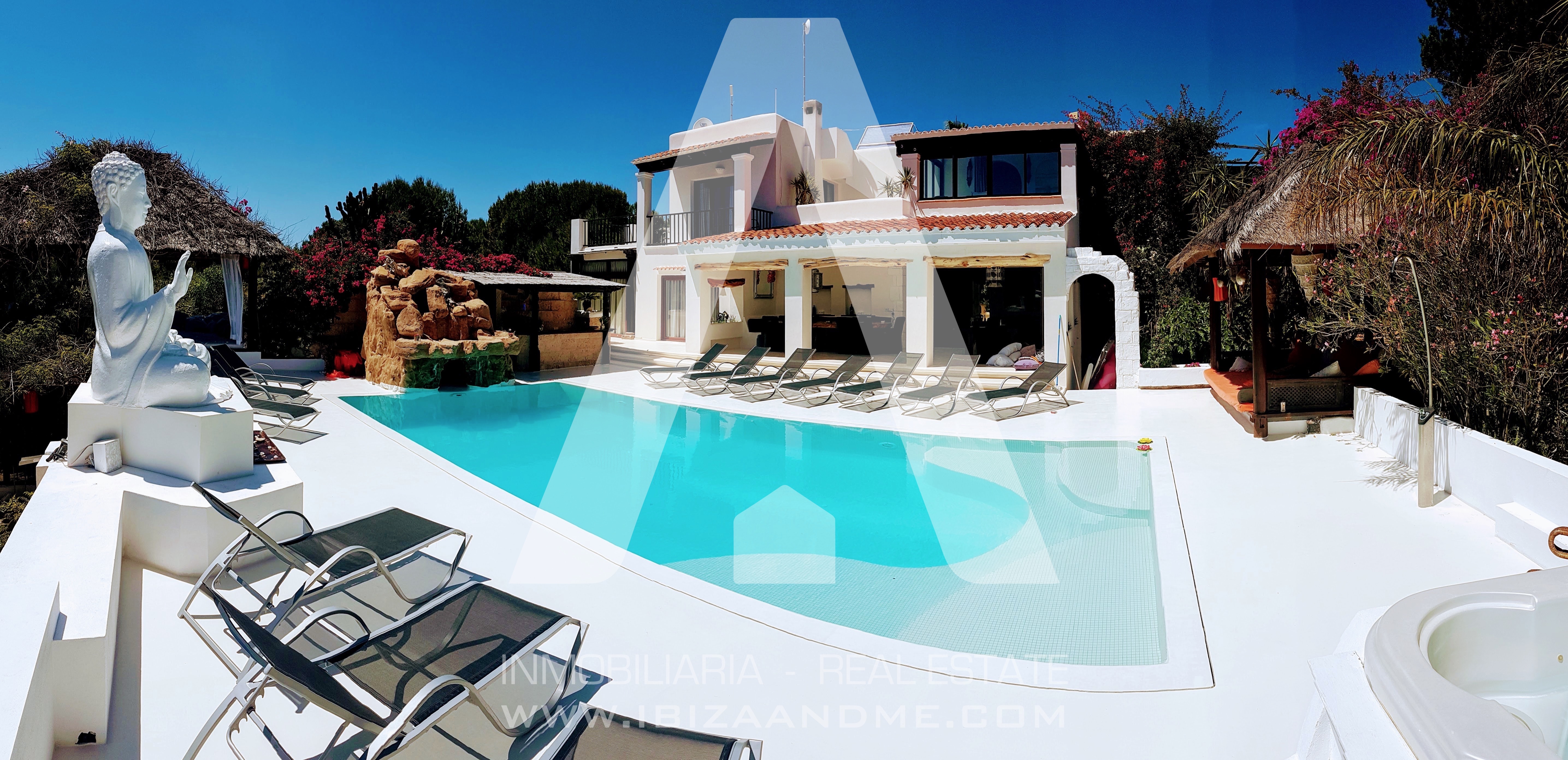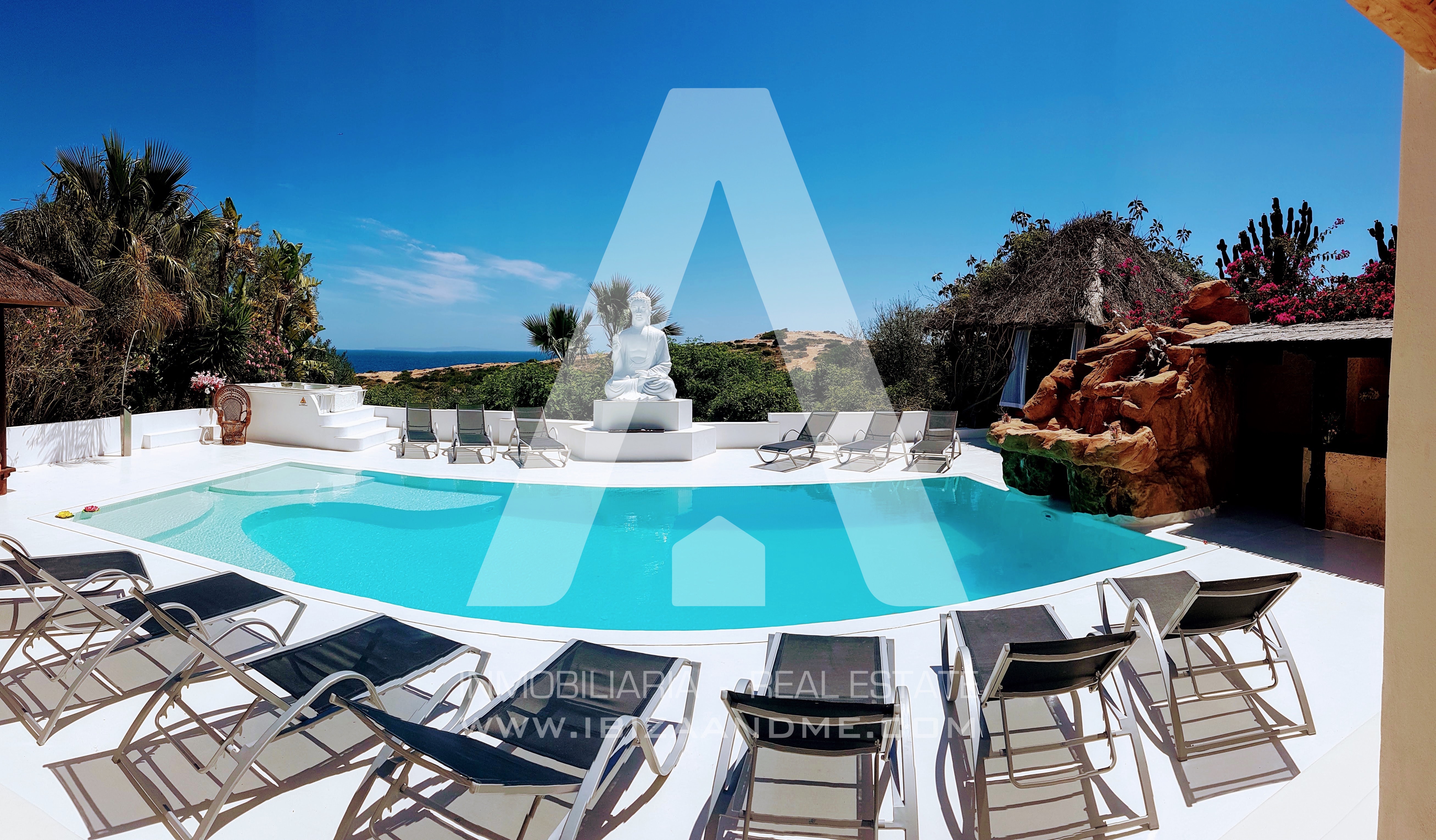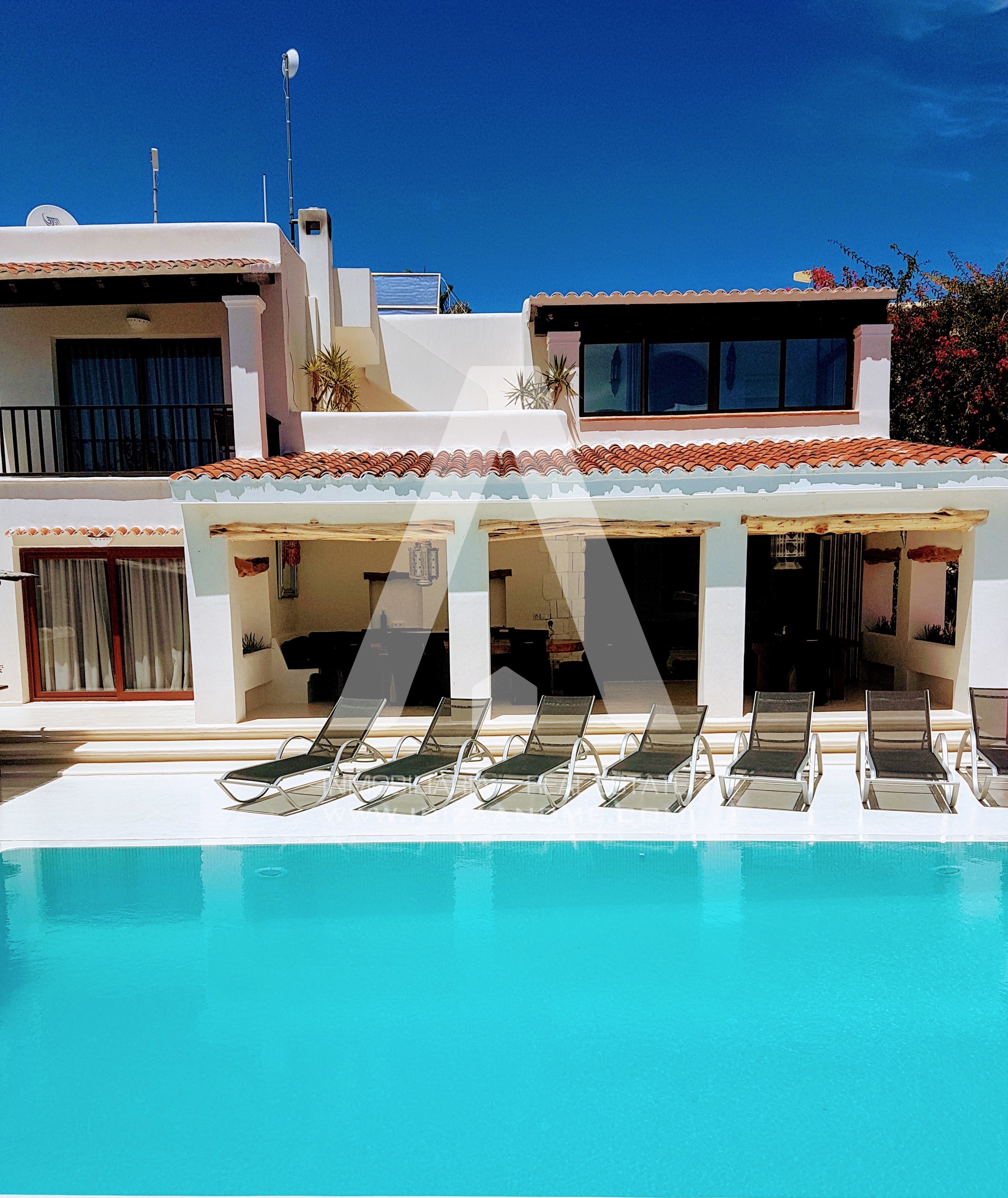Bonita villa ubicada en la exclusiva zona de Cap Martinet. Con 600m2 construidos en una parcela de 2.800m2, la vivienda cuenta con 14 habitaciones y 13 wc. En el exterior encontramos una gran zona de terrazas con piscina, solarium, y una bonita haima, todo con vistas privilegiadas al mar.