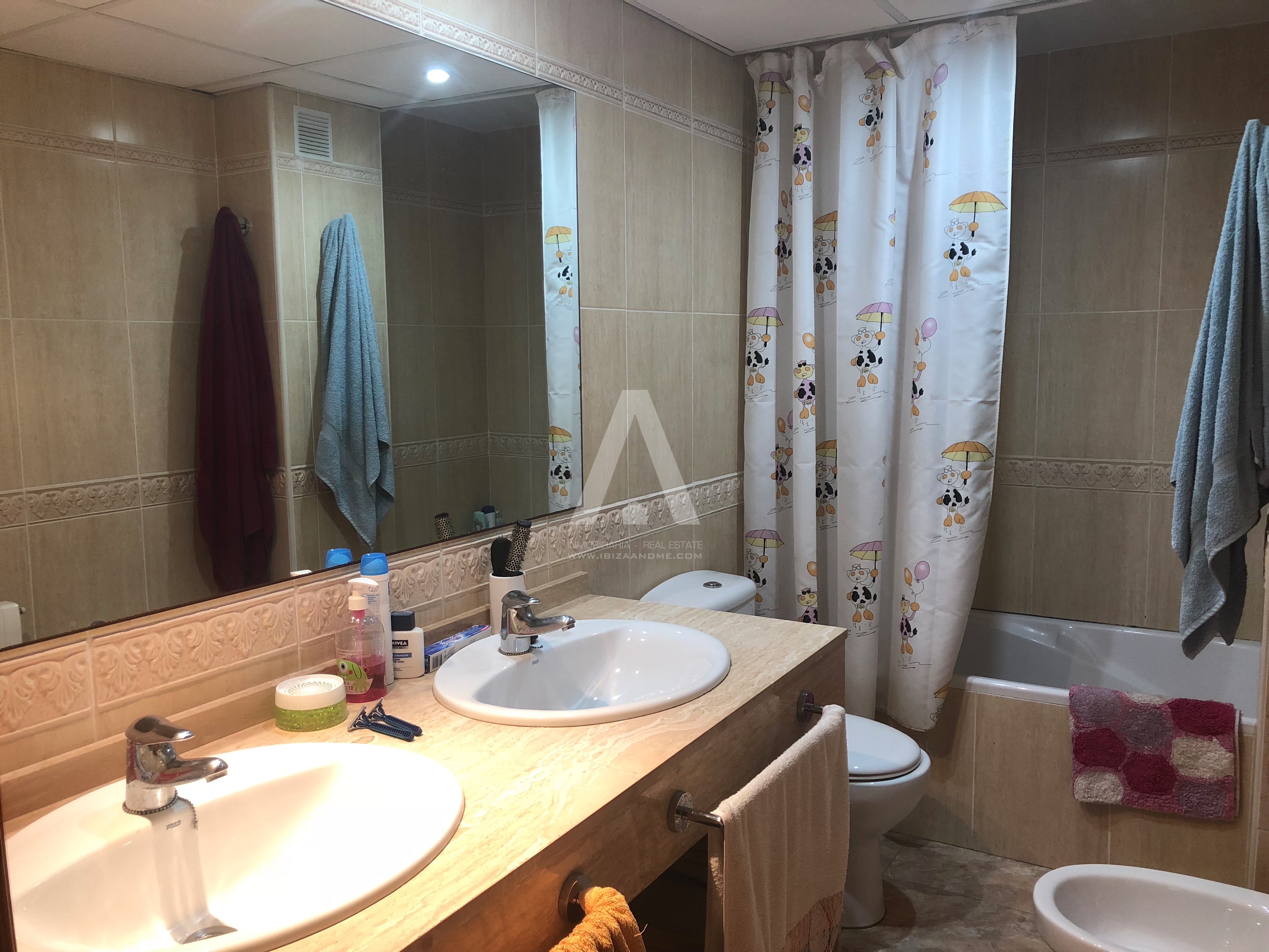 Bonito y espacioso piso de 3 habitaciones y 2 WC ubicado en El Barrio de Can Misses. Con 112m2, cuenta con un amplio salón con cocina y lavadero independientes. El precio incluye una plaza de garaje y trastero de 12,30m2.