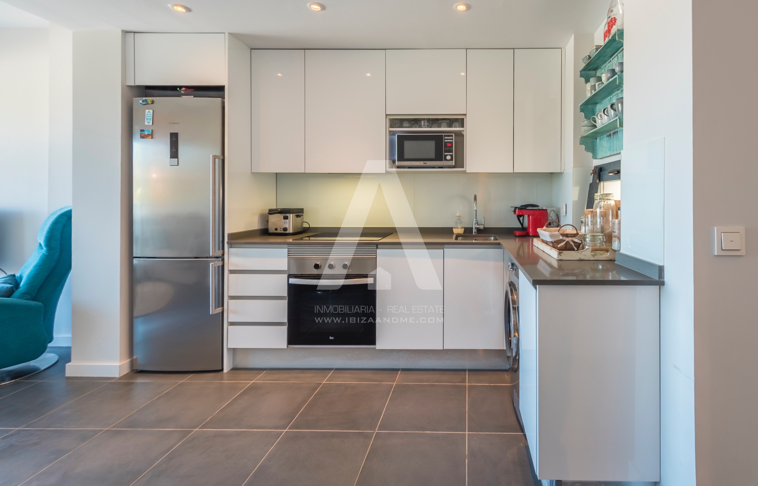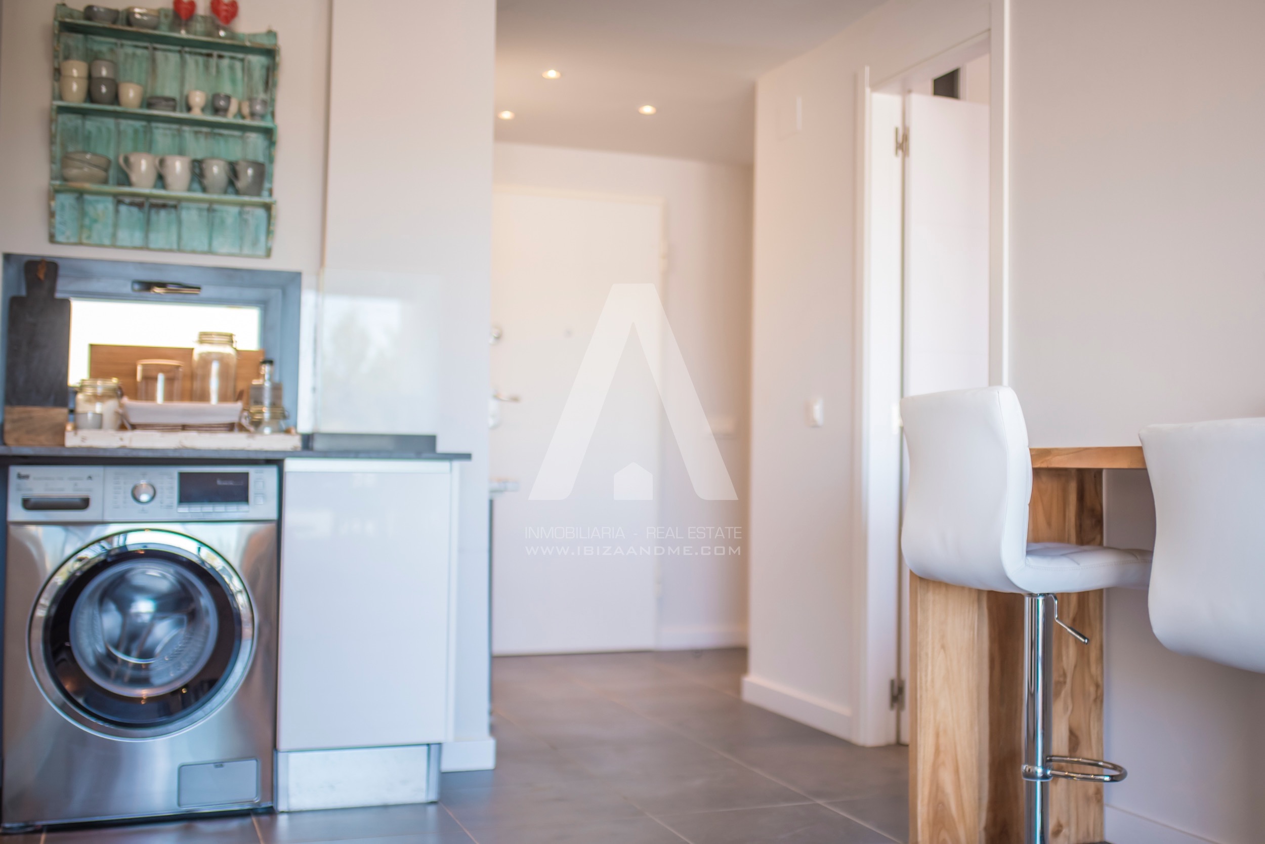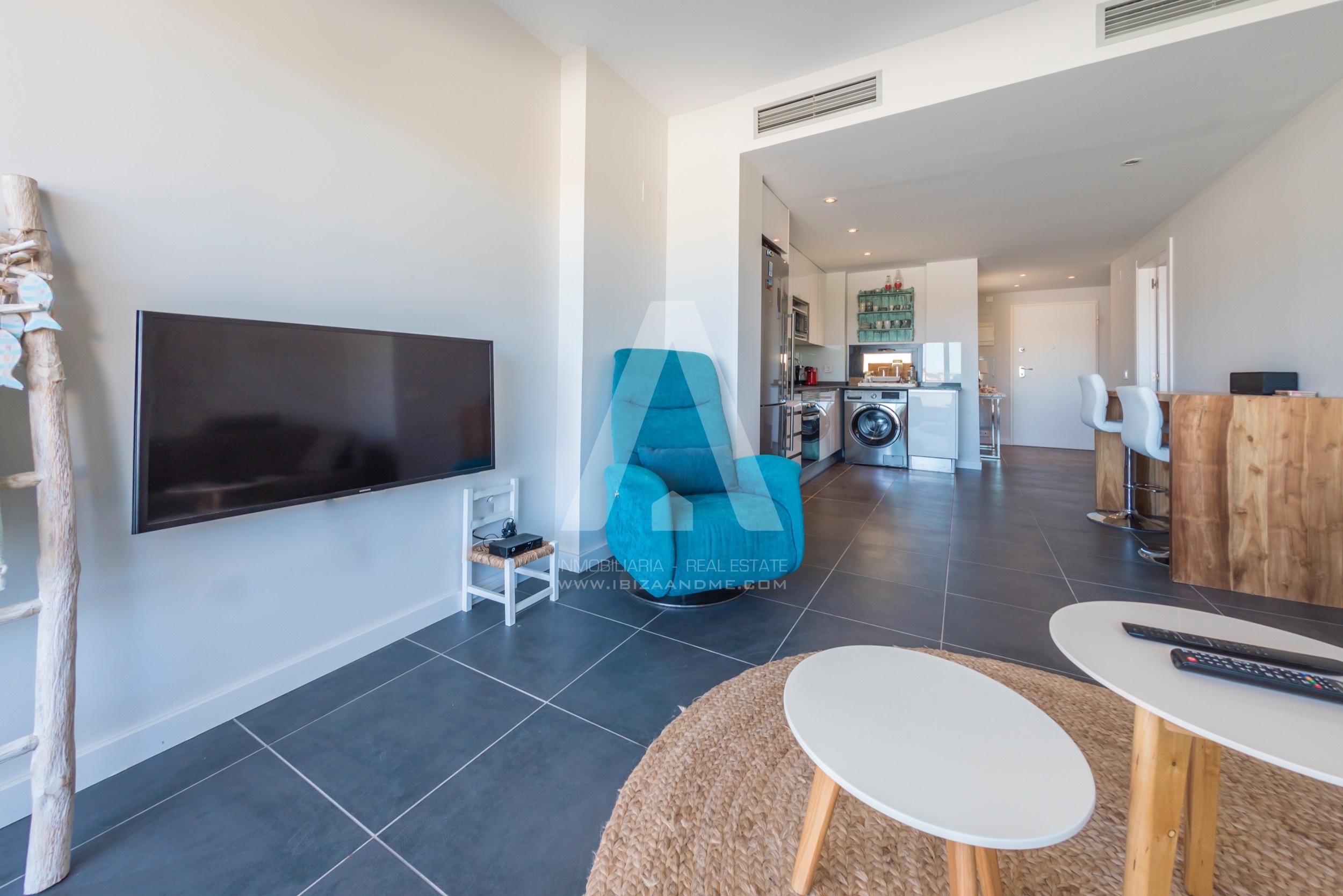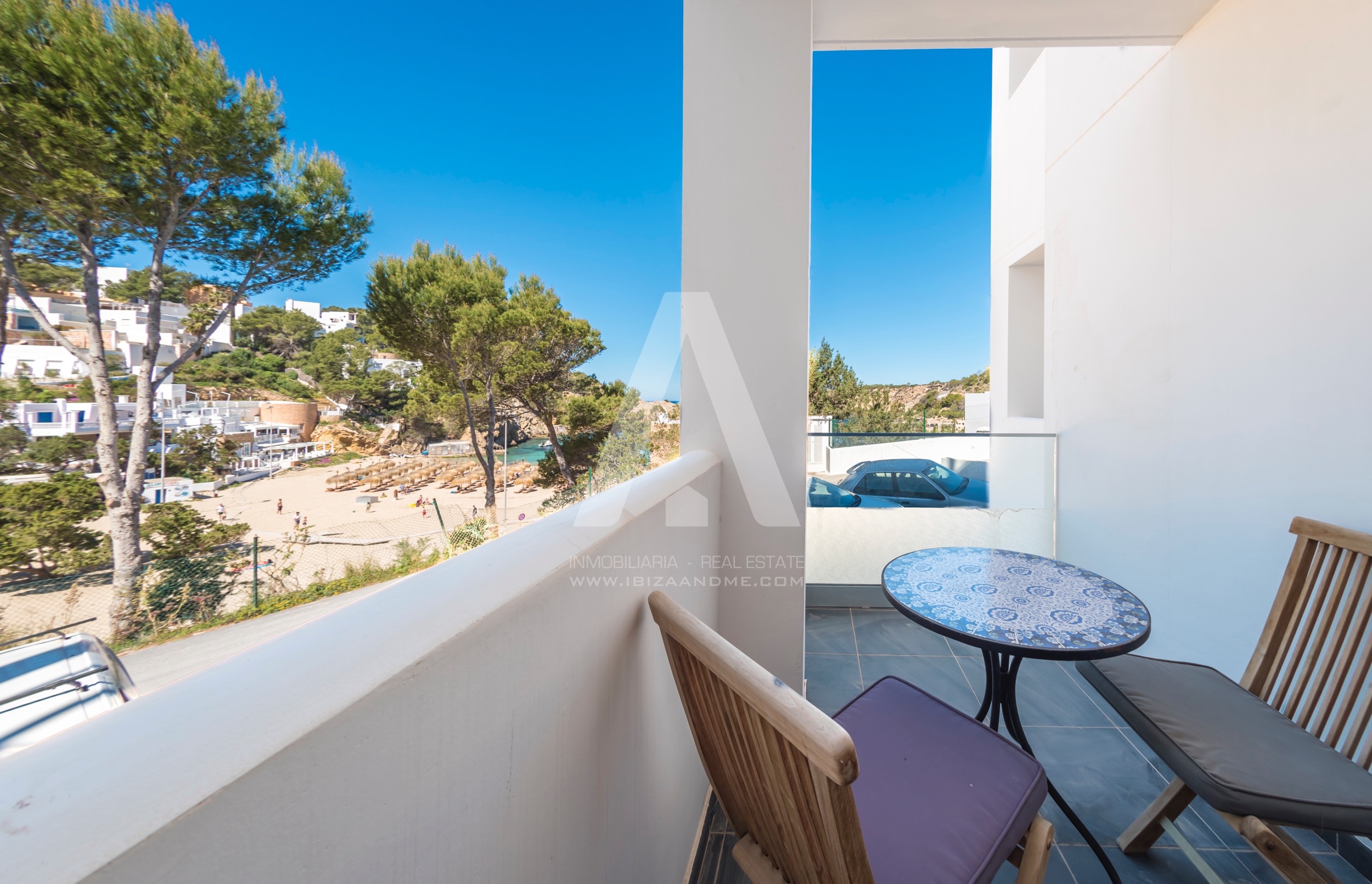 This modern apartment is only a few steps away from the beautiful bay of Cala Vadella. This first line building ‘Coral’ is finished in July 2016 and is well-constructed. From both of the terraces you enjoy the views over the bay. A perfect apartment for a couple or a little family when furnished with a sofa bed. The kitchen is well equipped with modern appliances.