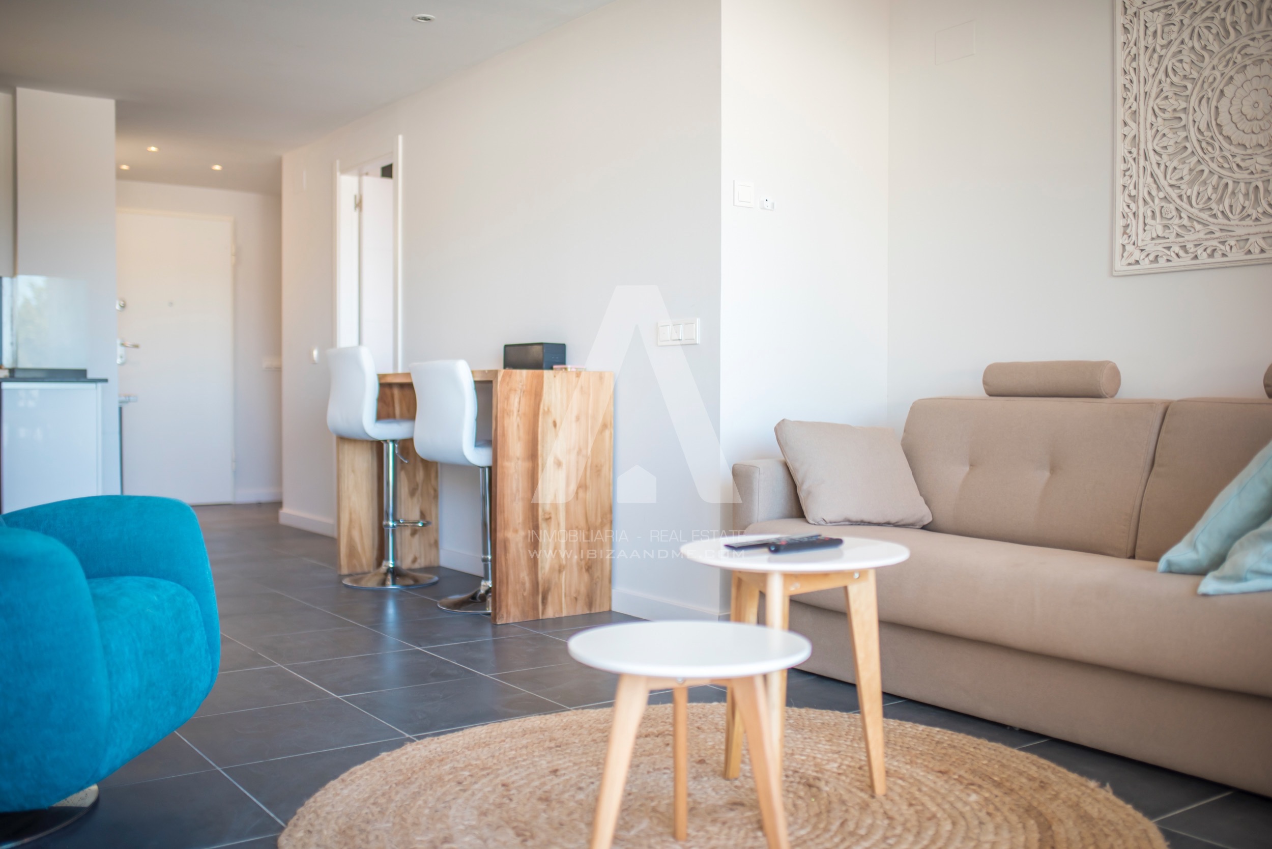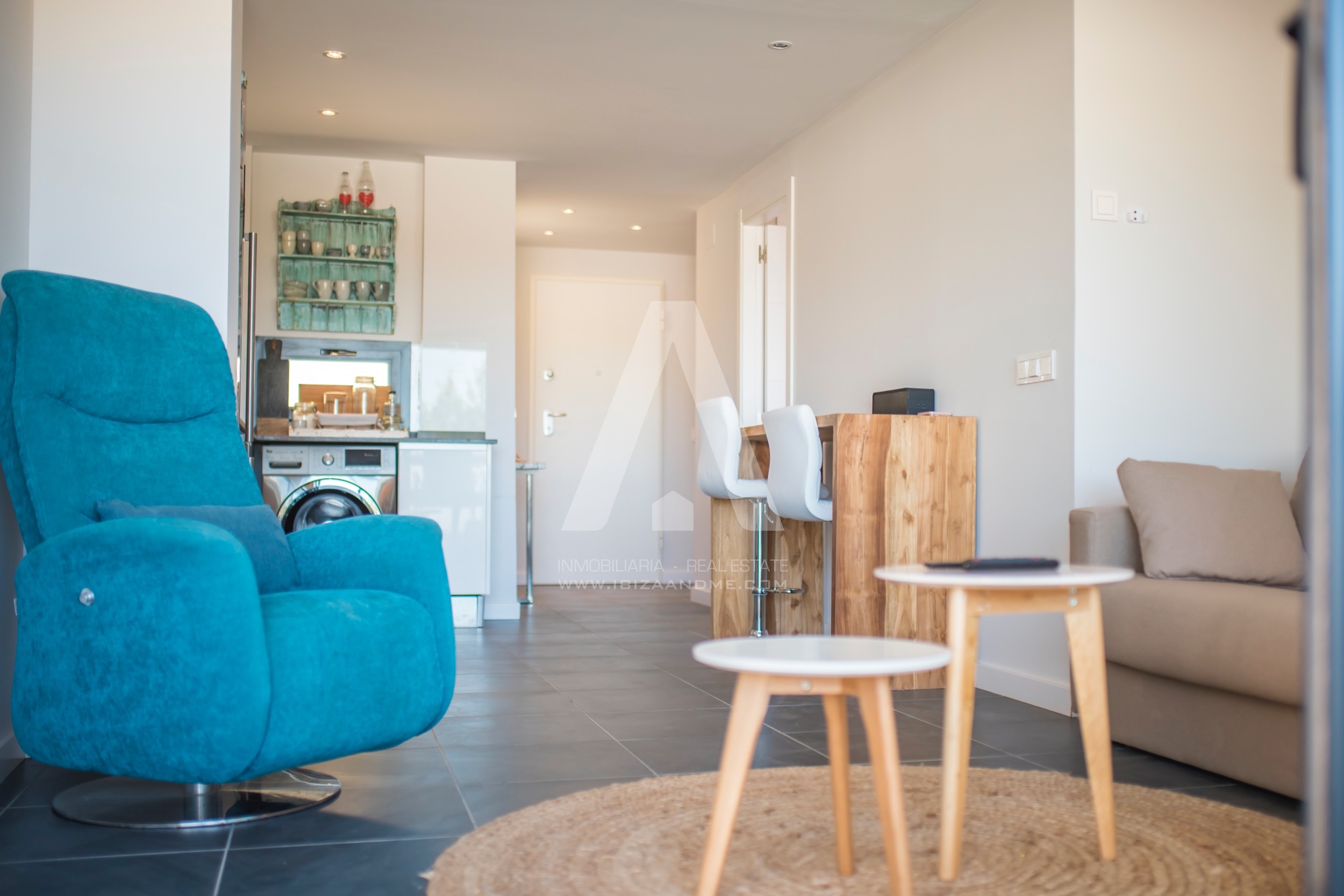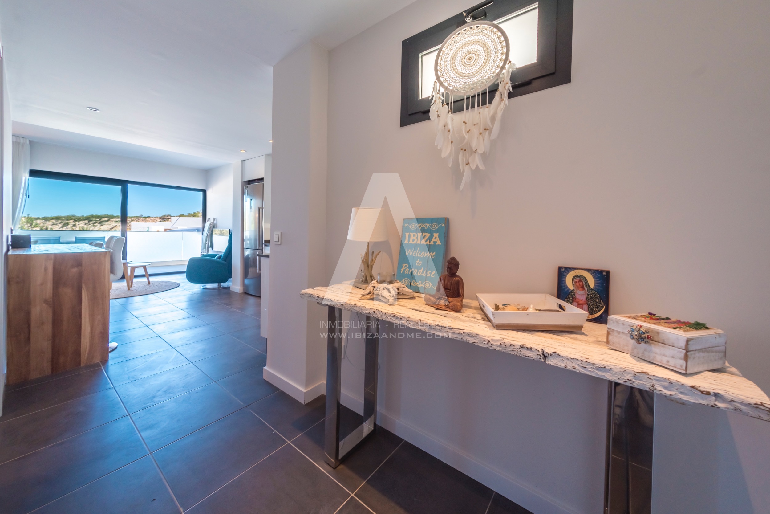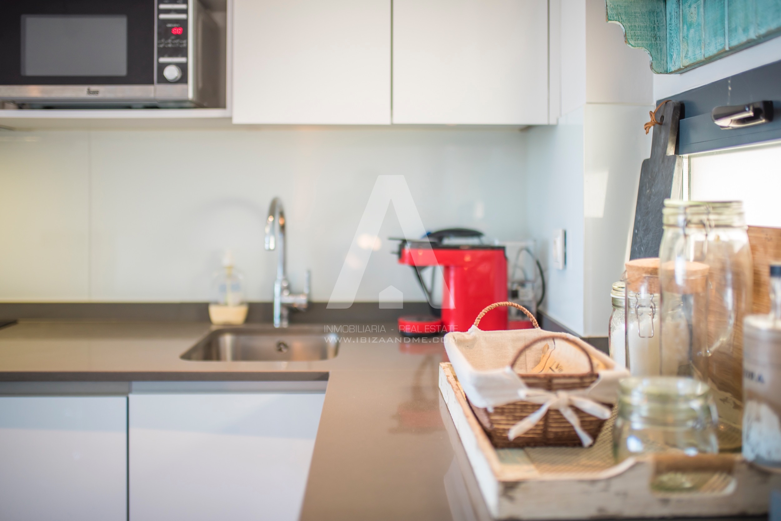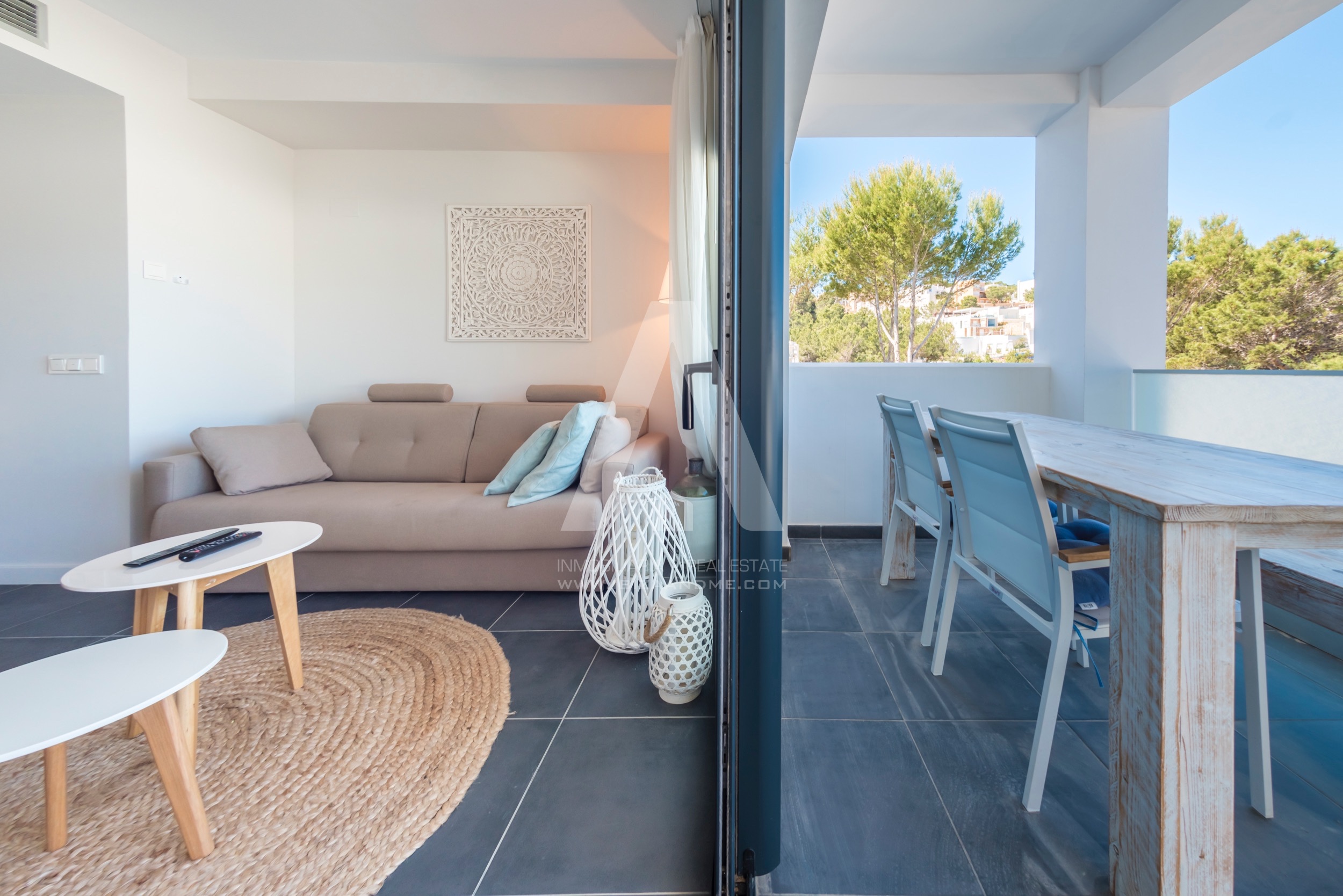 This modern apartment is only a few steps away from the beautiful bay of Cala Vadella. This first line building ‘Coral’ is finished in July 2016 and is well-constructed. From both of the terraces you enjoy the views over the bay. A perfect apartment for a couple or a little family when furnished with a sofa bed. The kitchen is well equipped with modern appliances.