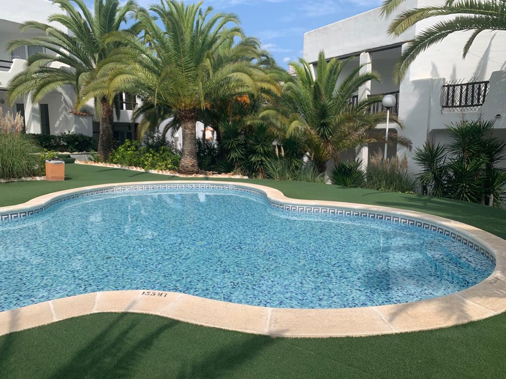 Bonita planta baja ubicada a 1 minuto a pie de la playa de Cuatro Pinos, en Santa Eulalia. Con una habitación y un WC, cuenta con terraza y dos piscinas comunitarias. Reformado y en muy buen estado.