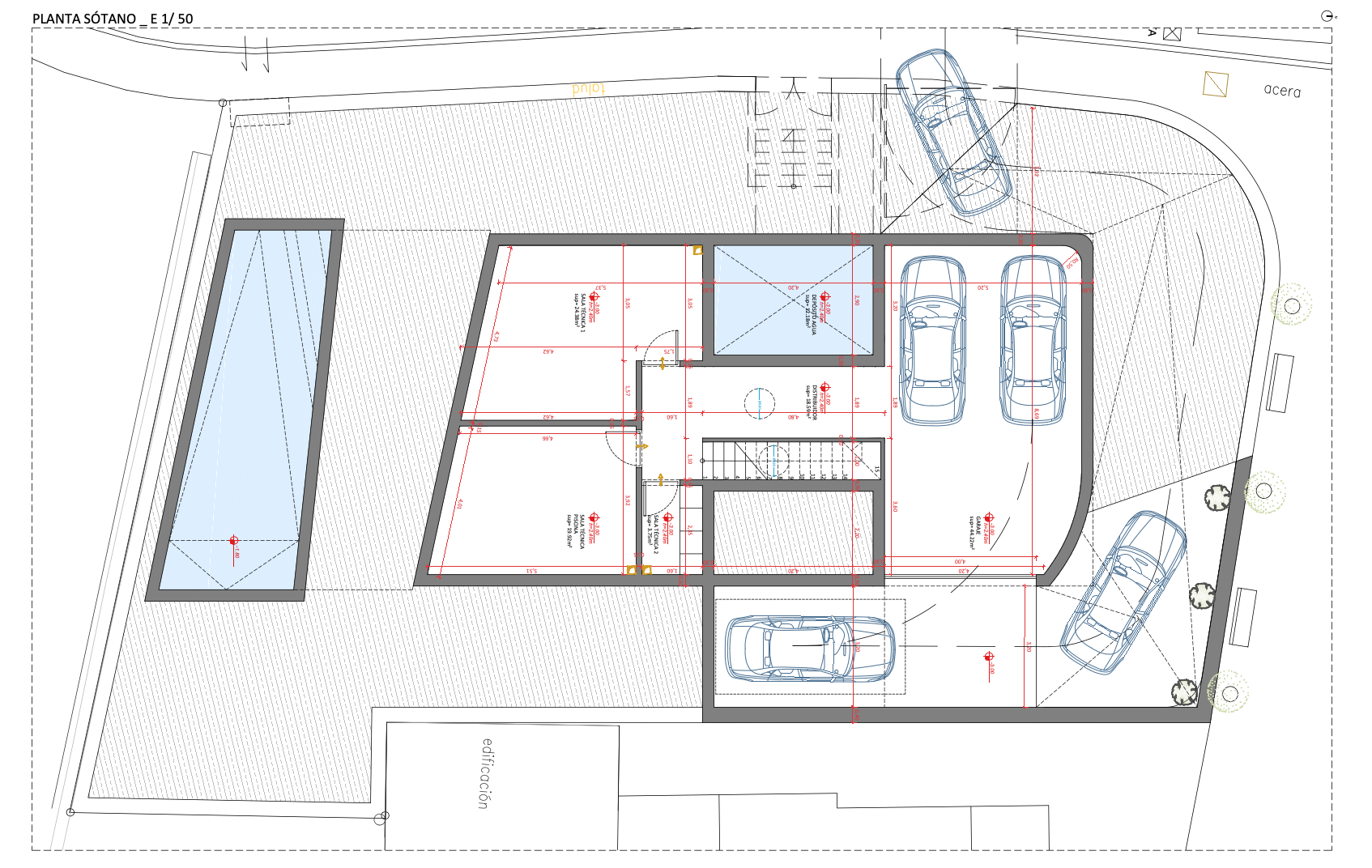 Compuesto por Garaje con capacidad para 2 vehículos, trastero, salas técnicas y cisterna de recogida de aguas pluviales. Acceso desde el Exterior por rampa privada.