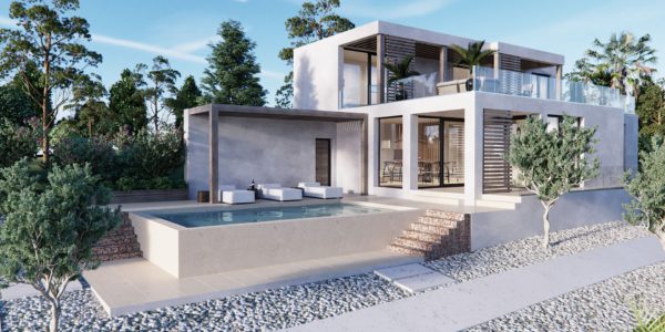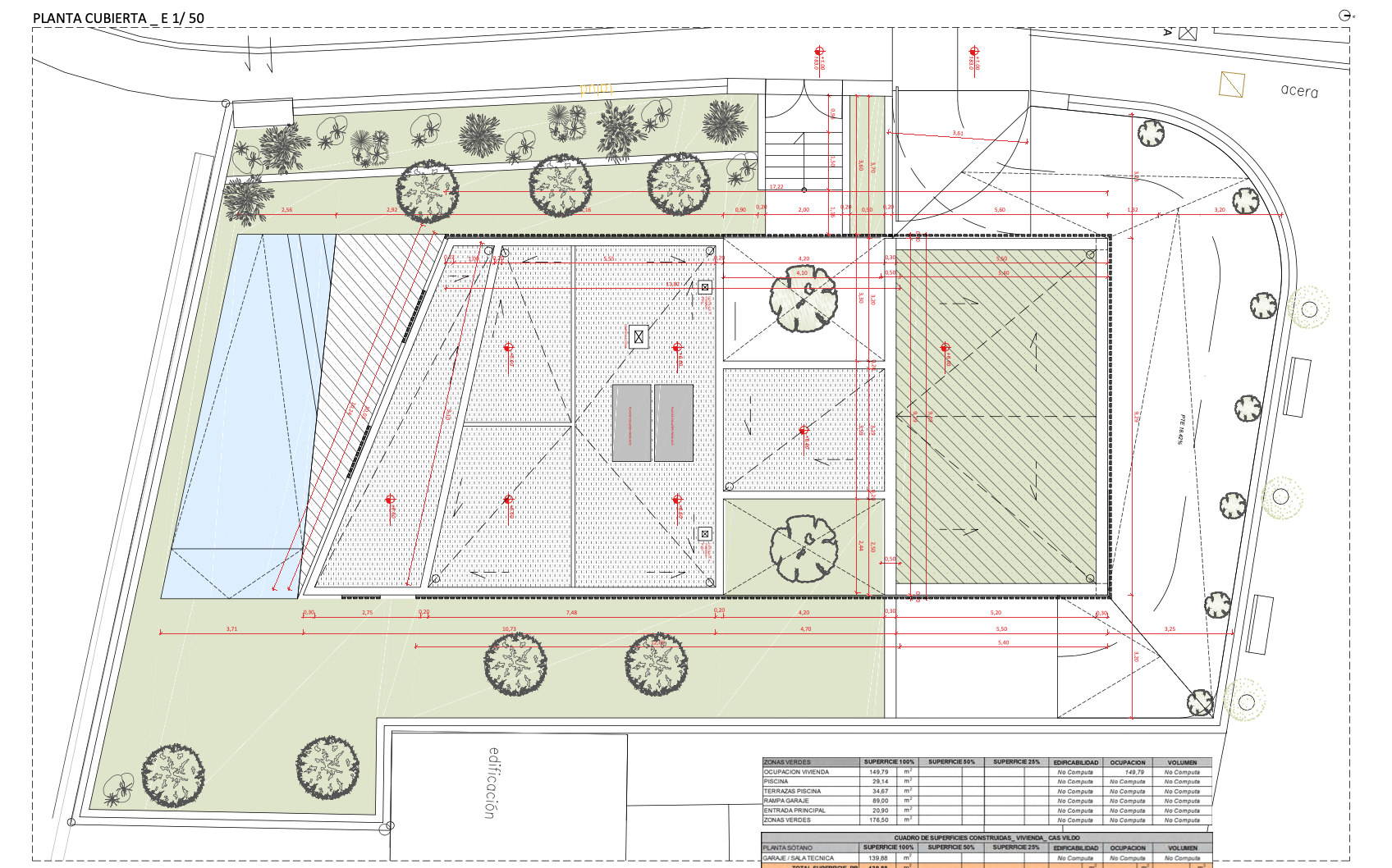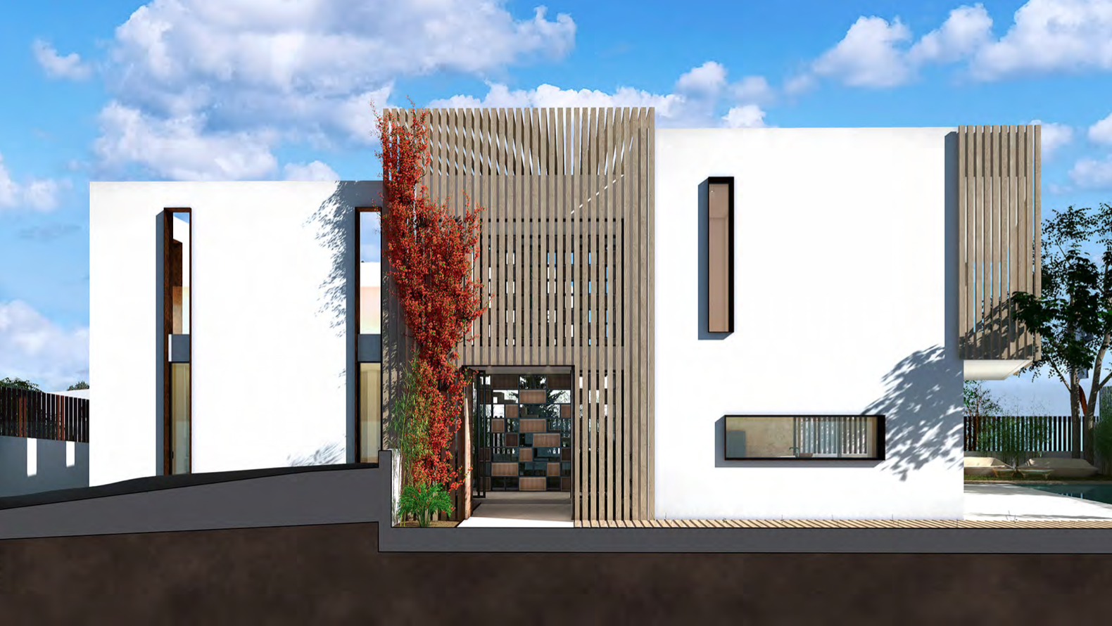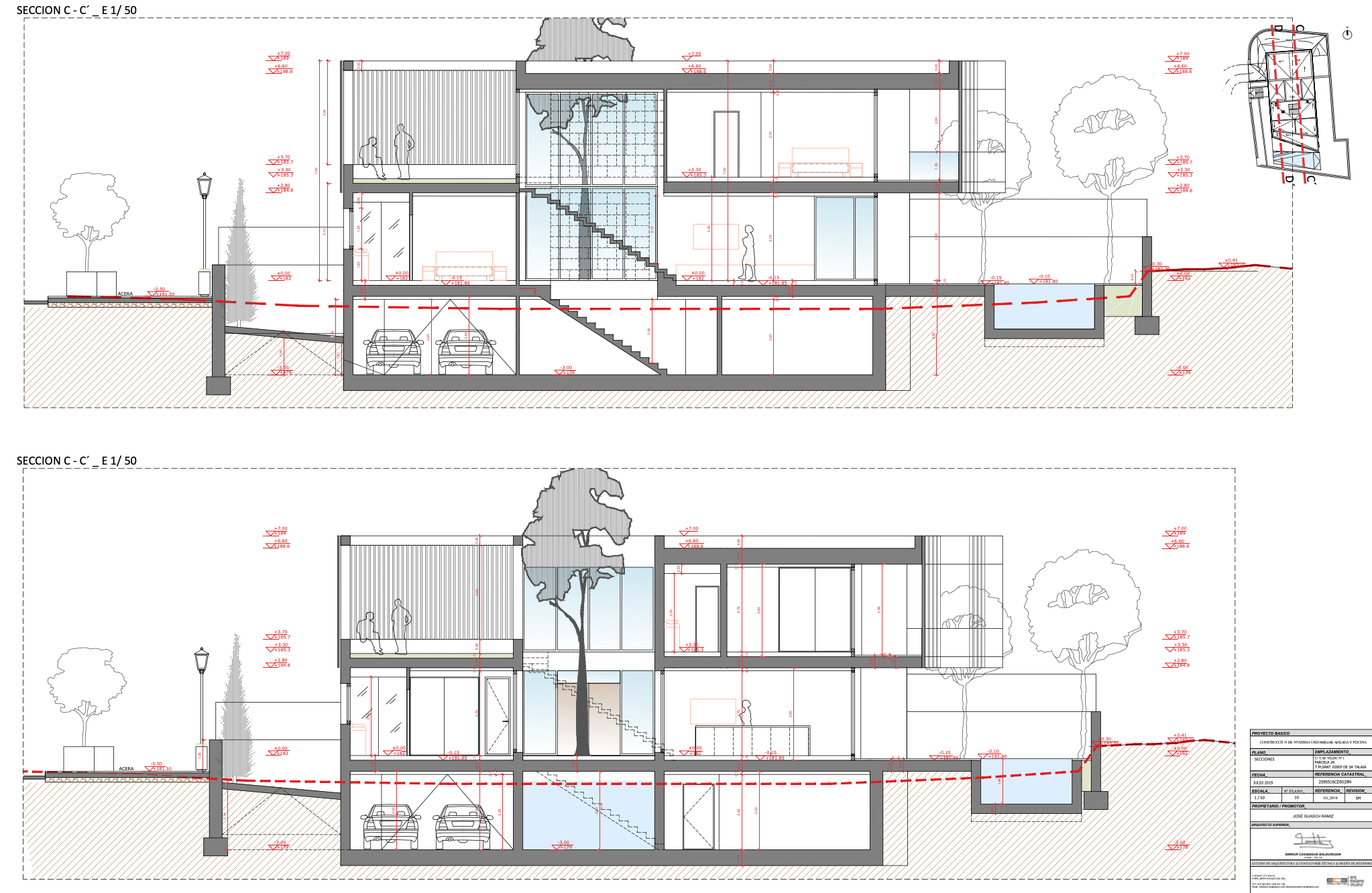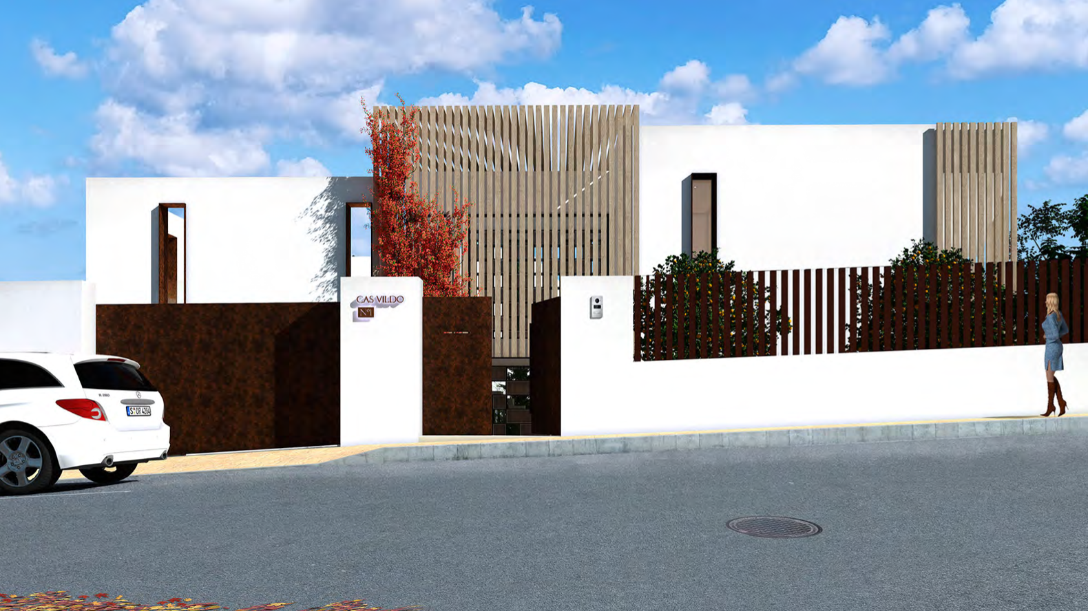 El Proyecto se crea a partir de la búsqueda de una pieza que genere un programa versátil. Se trata de una construcción que se divide en 2 módulos interconectados por Núcleo de la escalera que los conecta entre el Lleno y el Vacío, creando el espacio Dentro/ Fuera. La vivienda busca dar la Espalda a la carretera, pero con una mirada hacia atrás a través de las hendiduras creadas en fachada. Por el contrario busca realzar las vistas al valle y la montaña. Se Compone de 3 niveles y piscina con zonas ajardinadas.