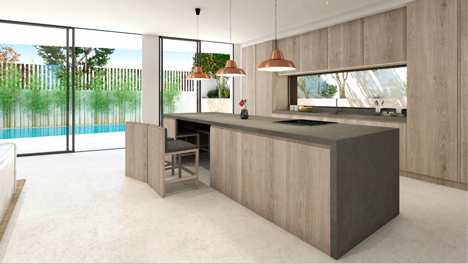 Living room – Dining room – Kitchen, integrated into a single space that revolves around the central table island. On the other hand, 2 rooms in suite with own bathroom and built-in wardrobes.