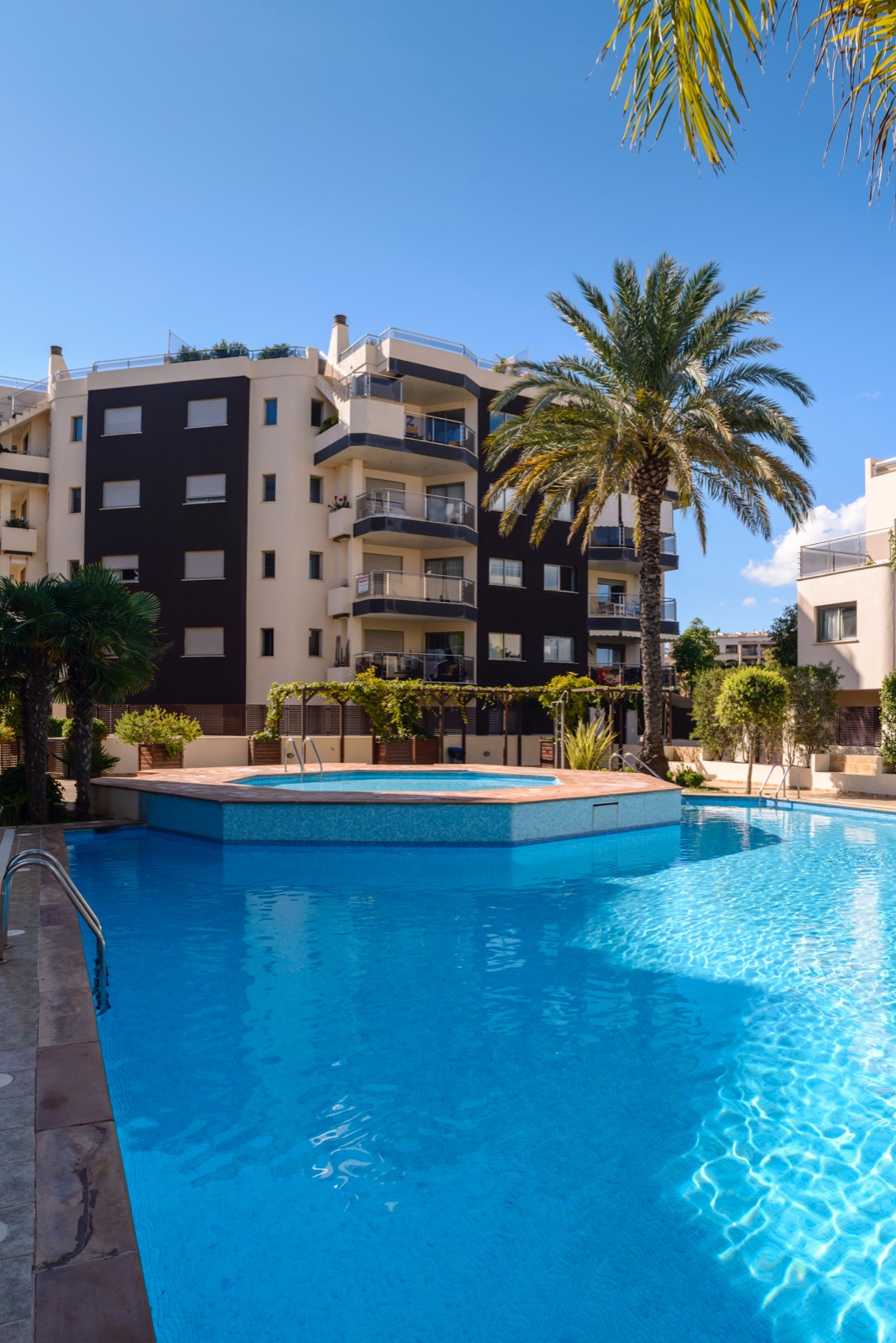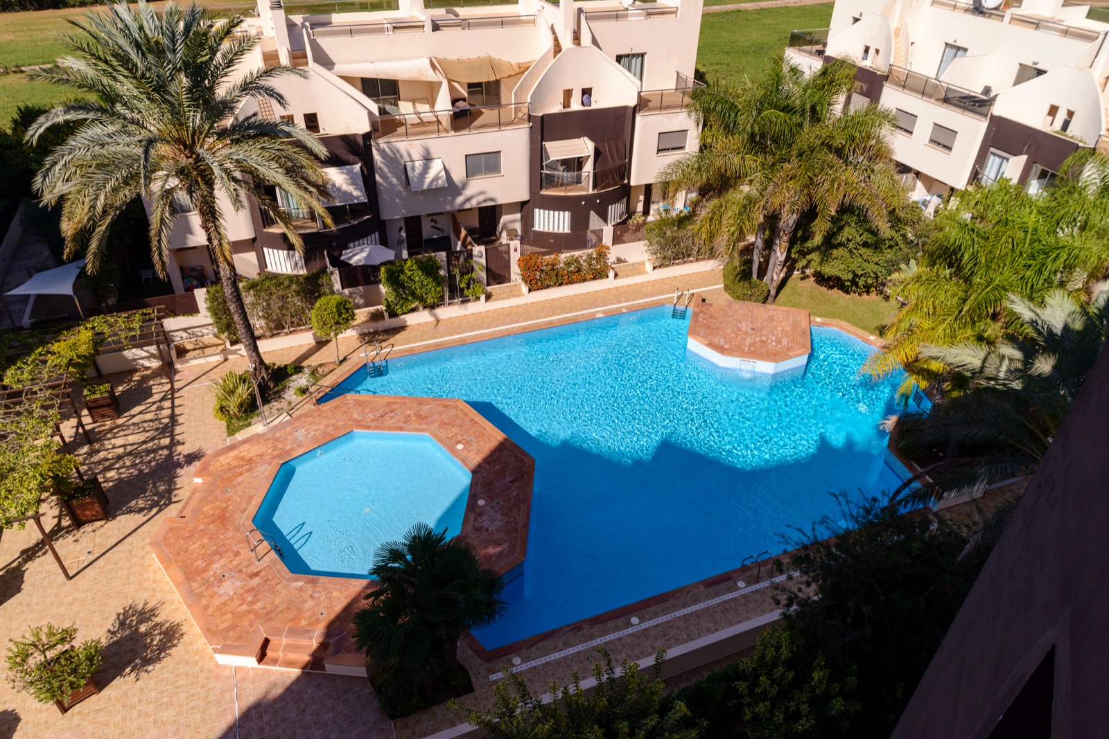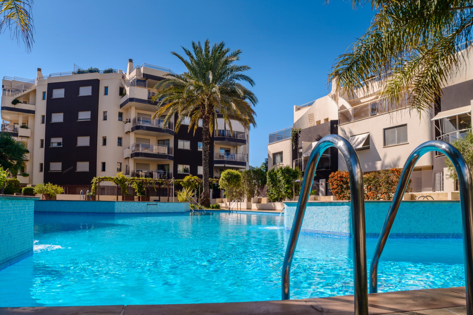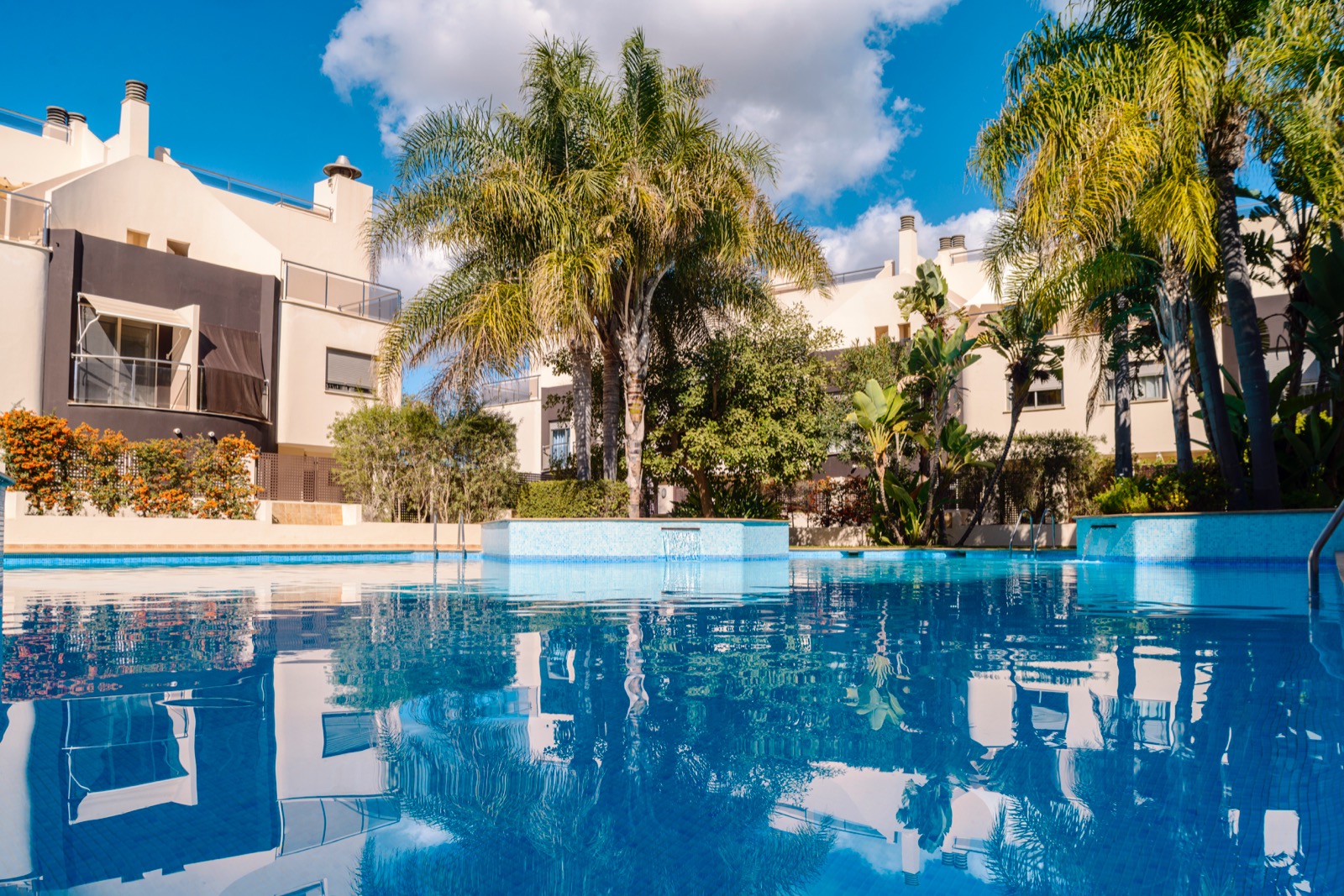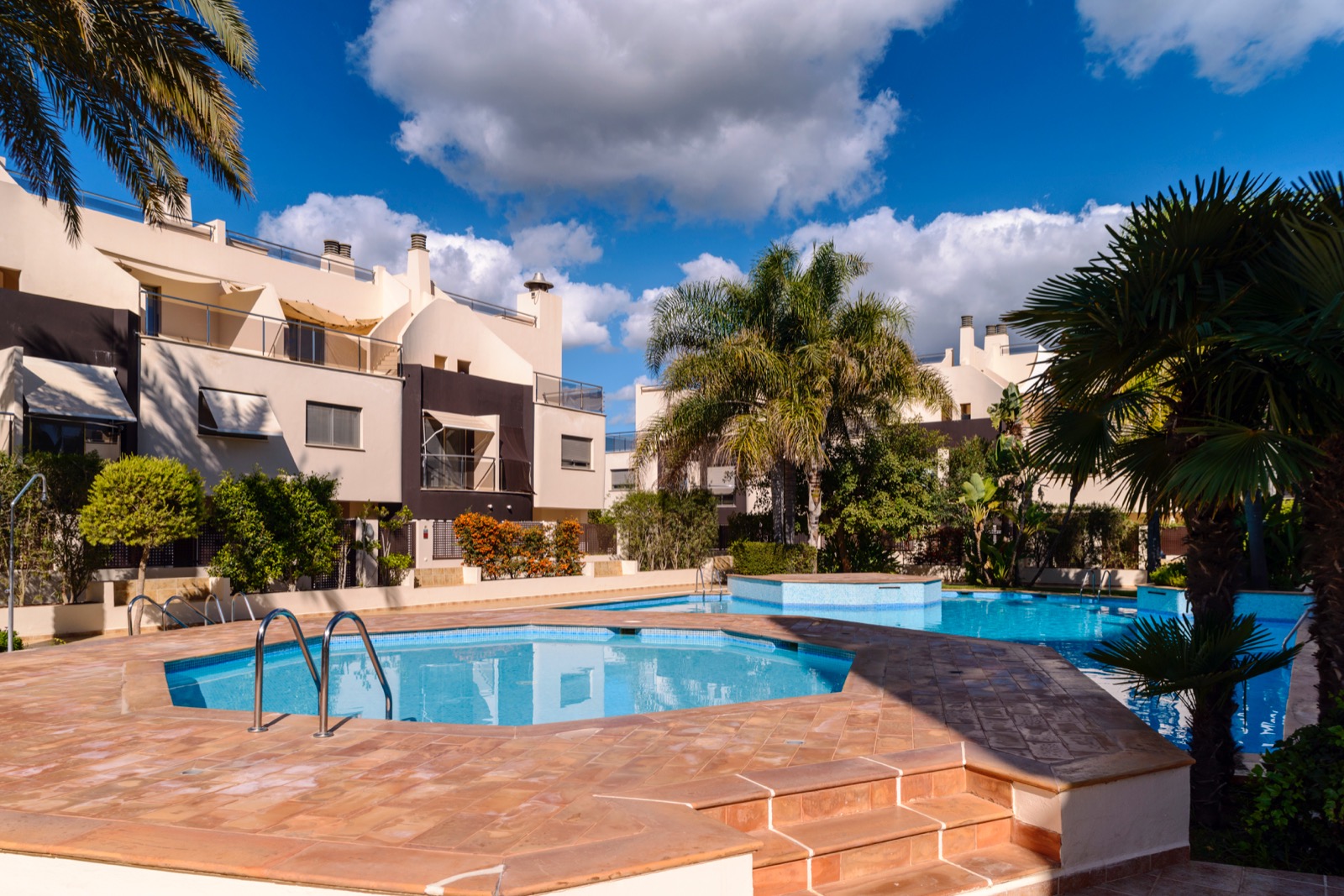 La comunidad cuenta con piscina comunitaria y zona de jardines.