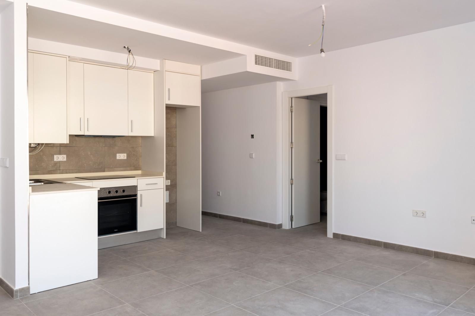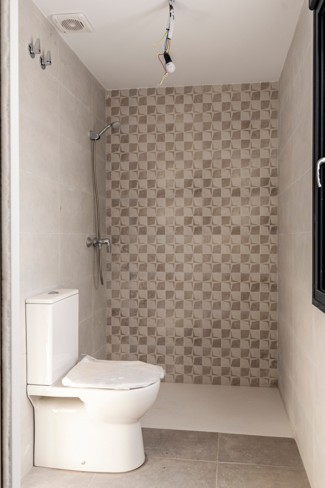 El piso se encuentra en un edificio de nueva construcción, 80 m2 distribuidos en 2 dormitorios, 2 baños, cocina abierta al salón y pequeño balcón, desde el que se accede a la terraza ático de unos 46 m2.